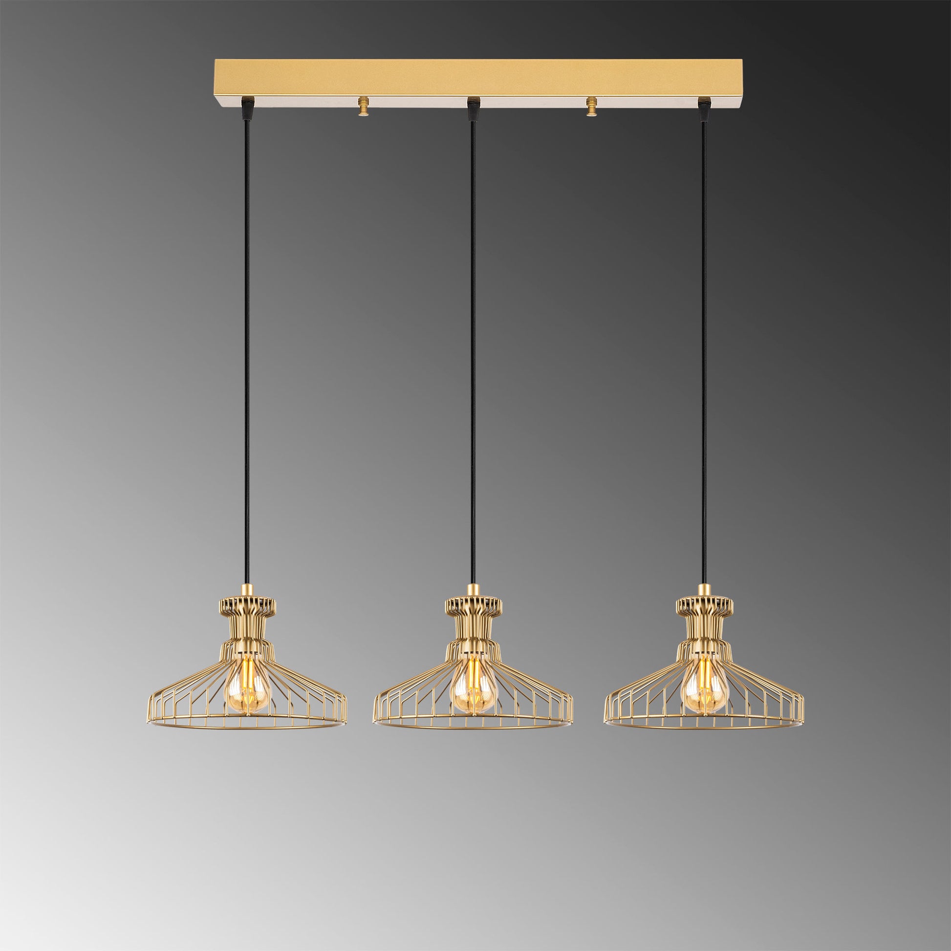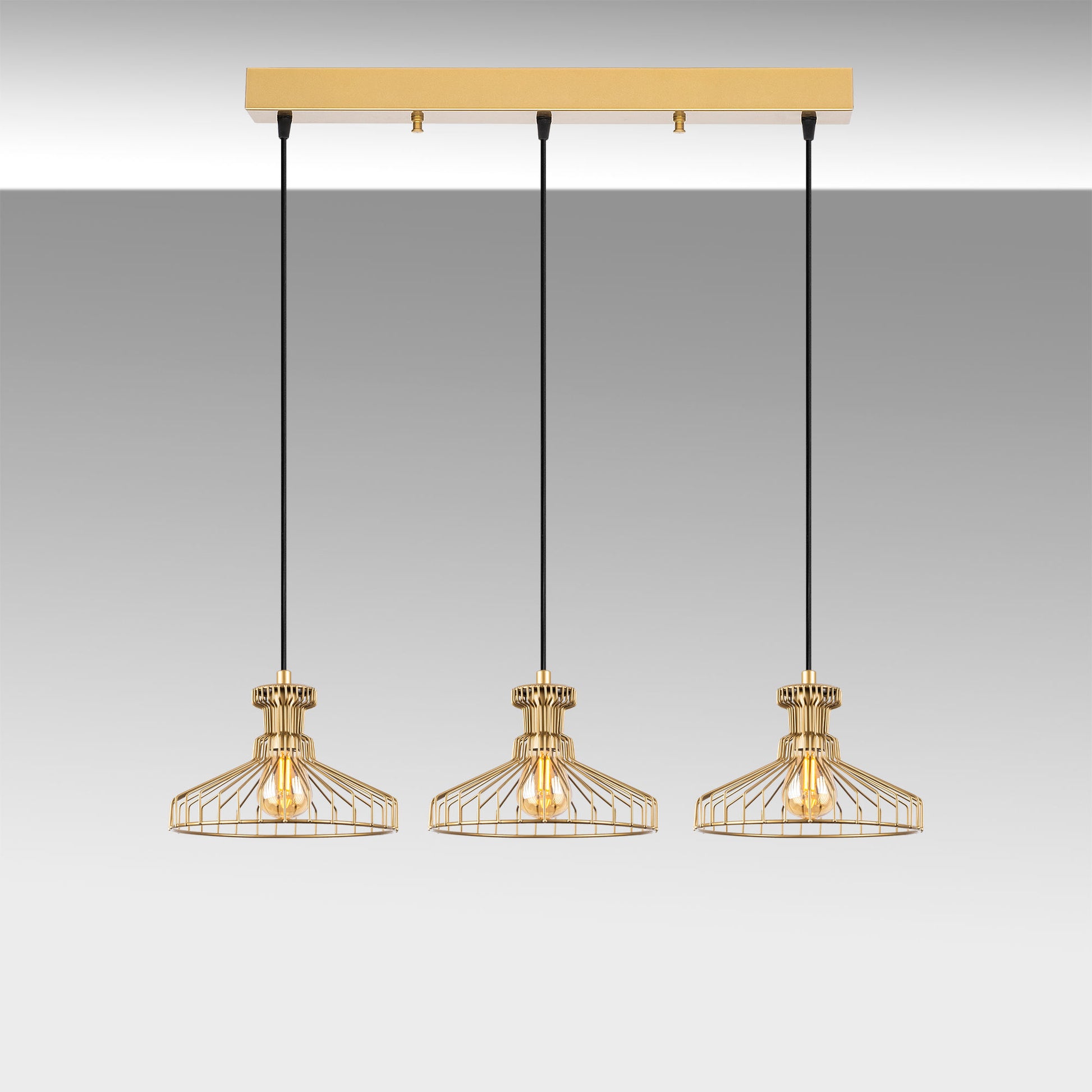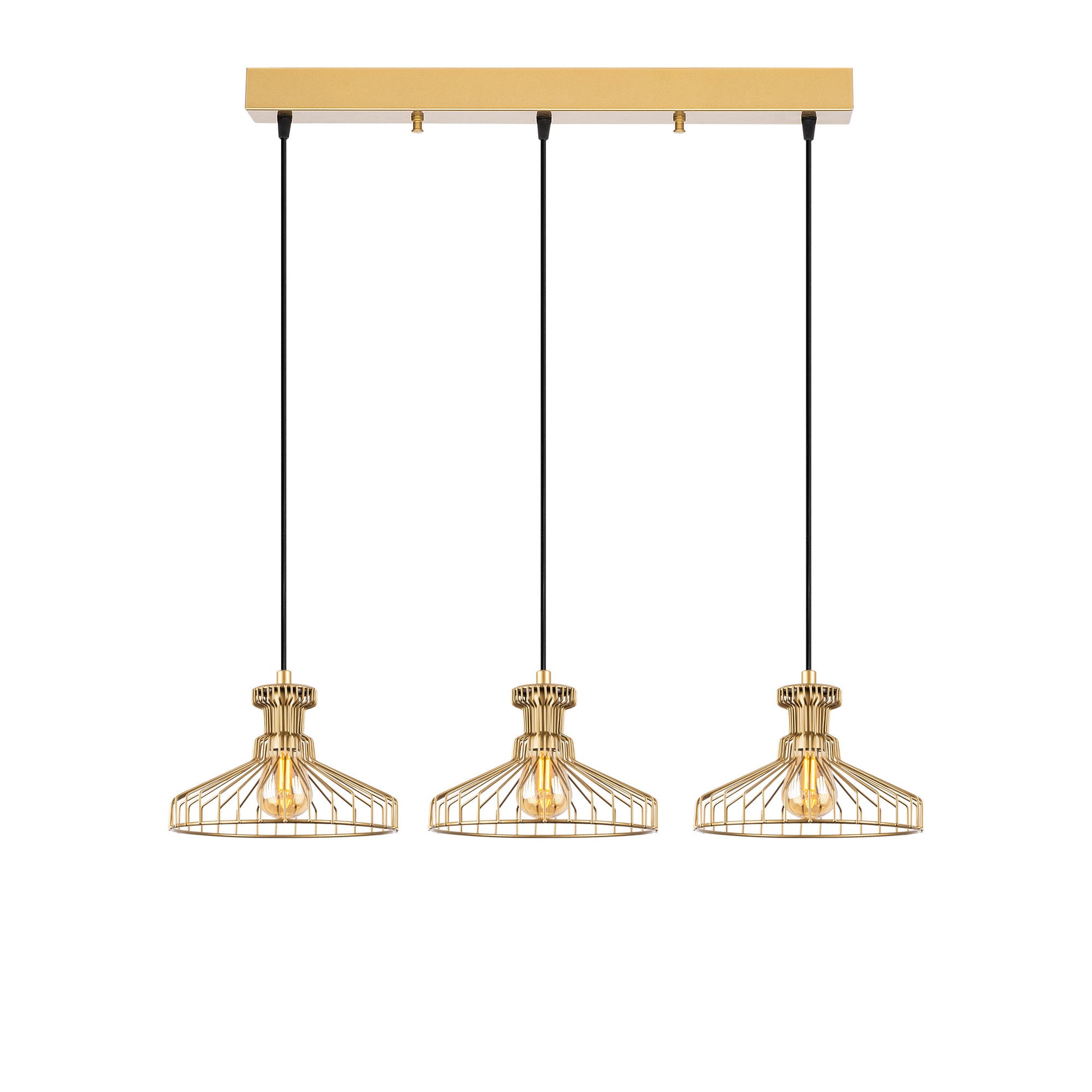 Candeeiro de Teto elegante em ouro brilhante, corpo de metal, altura ajustável, 96 x 23 x 129 cm | 3 x E27 máx. 40 W, design moderno e glamouroso para casa e escritório
