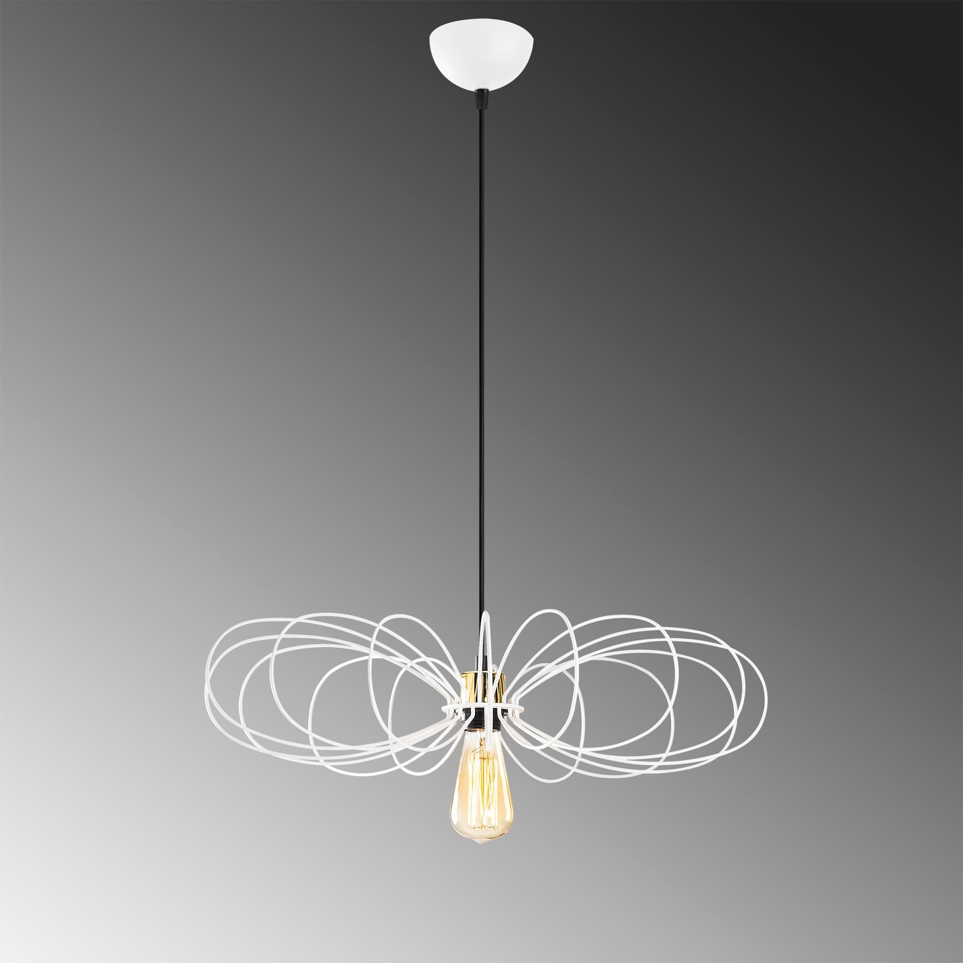 Candeeiro de Teto Branco Elegante, Corpo em Metal, 58 cm de Diâmetro, 112 cm de Altura | Altura Ajustável, Soquete E27, Máx. 40 W | Iluminação Elegante para Espaços Modernos