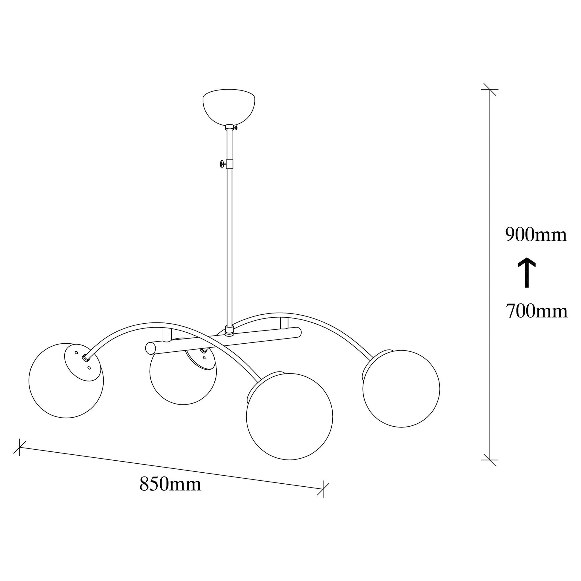 Com 85 x 80 cm, este candeeiro tem o tamanho perfeito para fazer uma afirmação sem sobrecarregar o seu espaço. A altura de 90 cm garante que fica pendurado ao nível ideal, criando um ponto focal cativante. A combinação de cores preto e branco dá-lhe um toque contemporâneo, permitindo-lhe dar largas à sua criatividade e experimentar diferentes esquemas de cores.