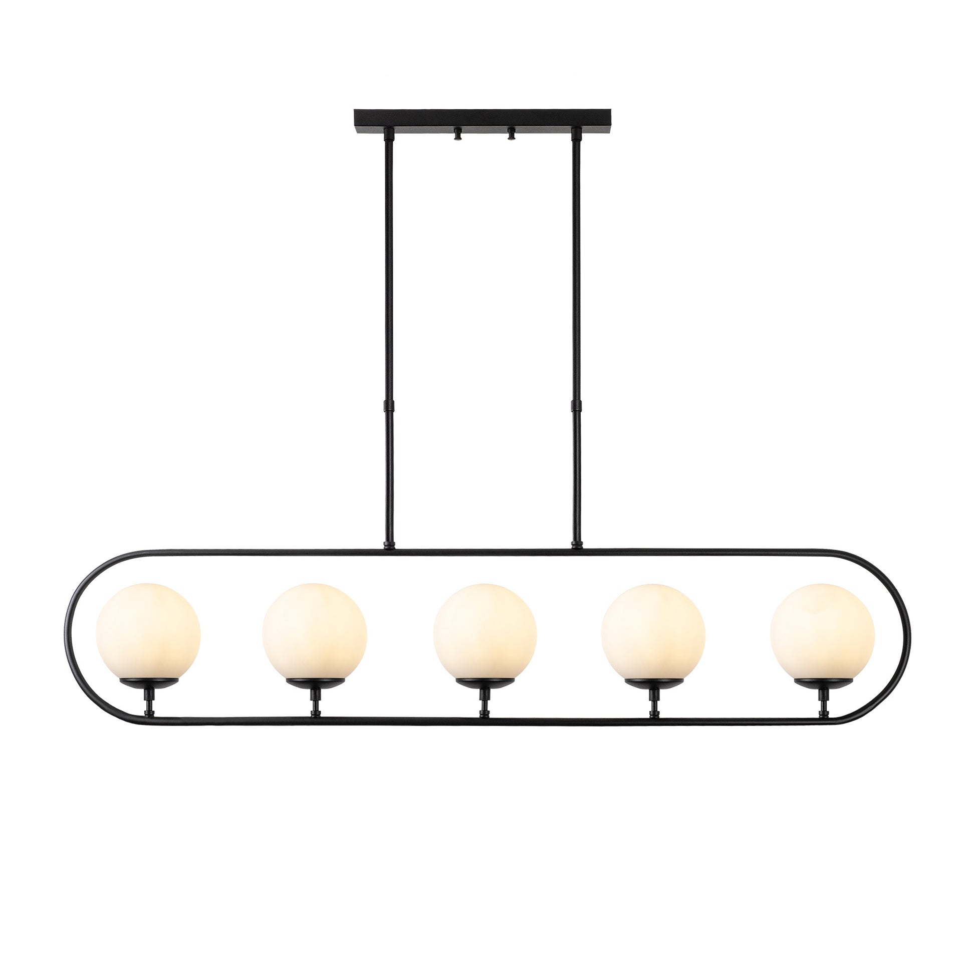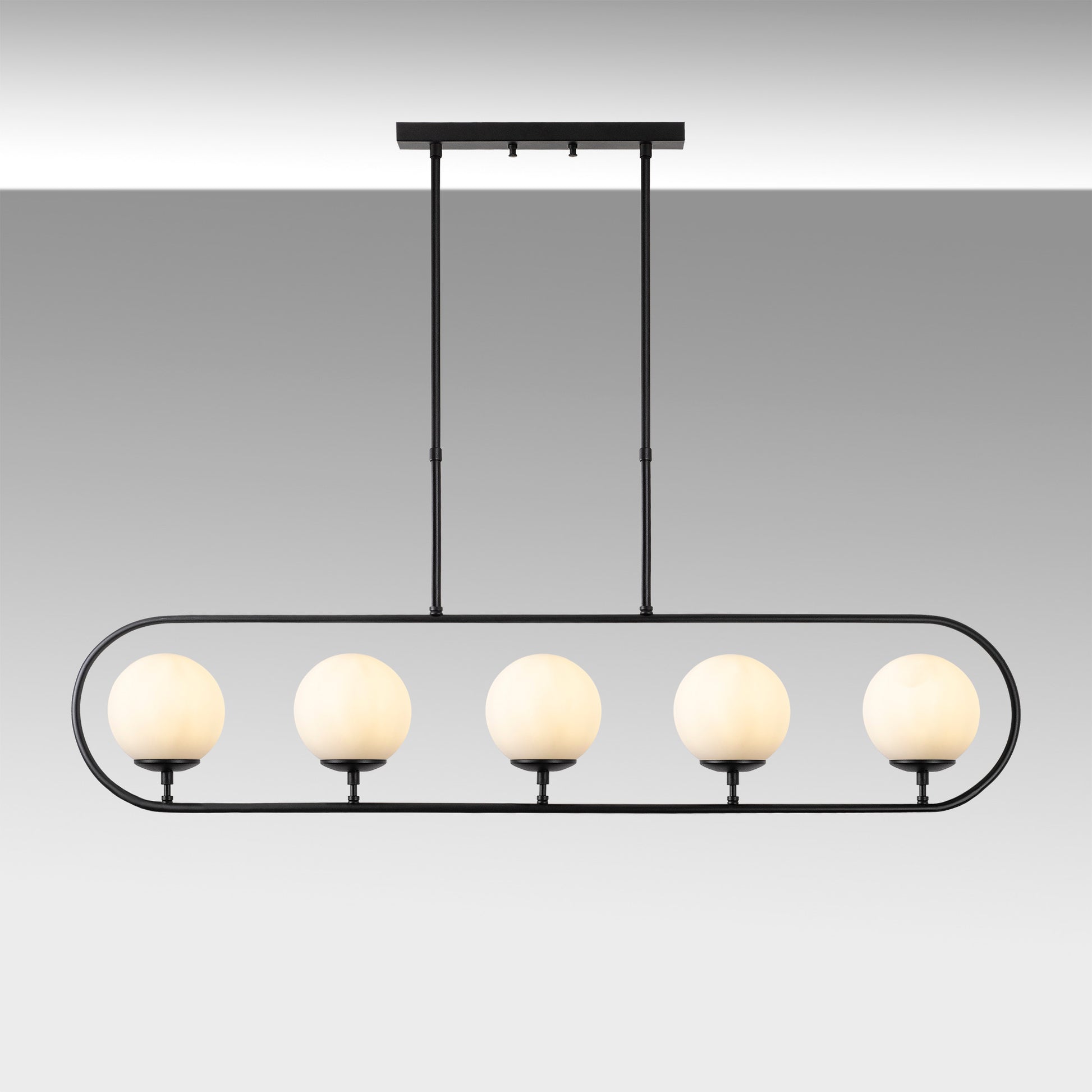 Candeeiro de Teto Industrial Moderno, Preto e Creme, 122 x 15 cm | Altura Ajustável 49-91 cm | Corpo em Metal e Tampa de Vidro | 5 Soquetes E14, Design Escandinavo Elegante