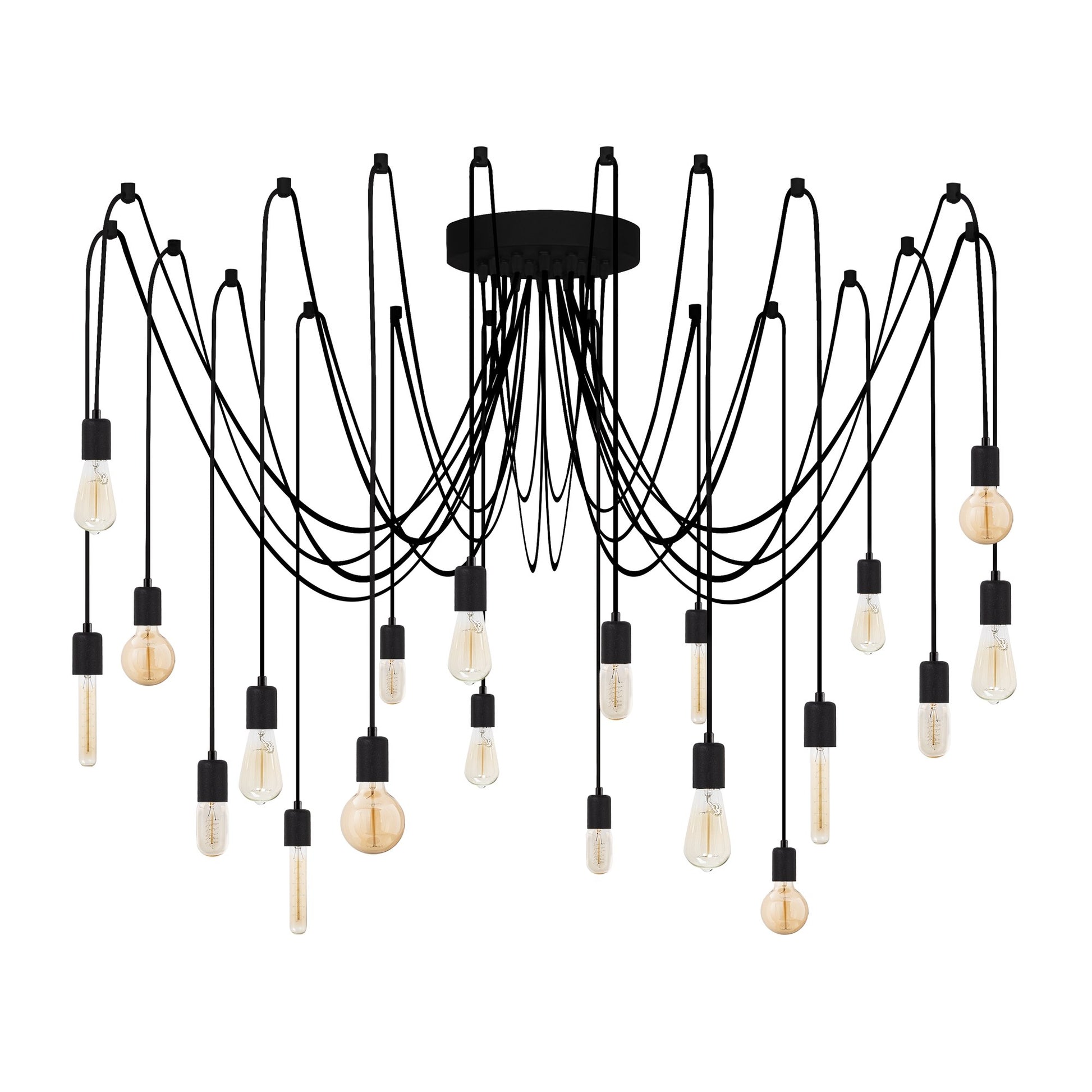 Candeeiro de Teto industrial moderno, corpo de metal preto, 246 x 246 cm, altura ajustável, 20 soquetes E27, design elegante para casa e escritório