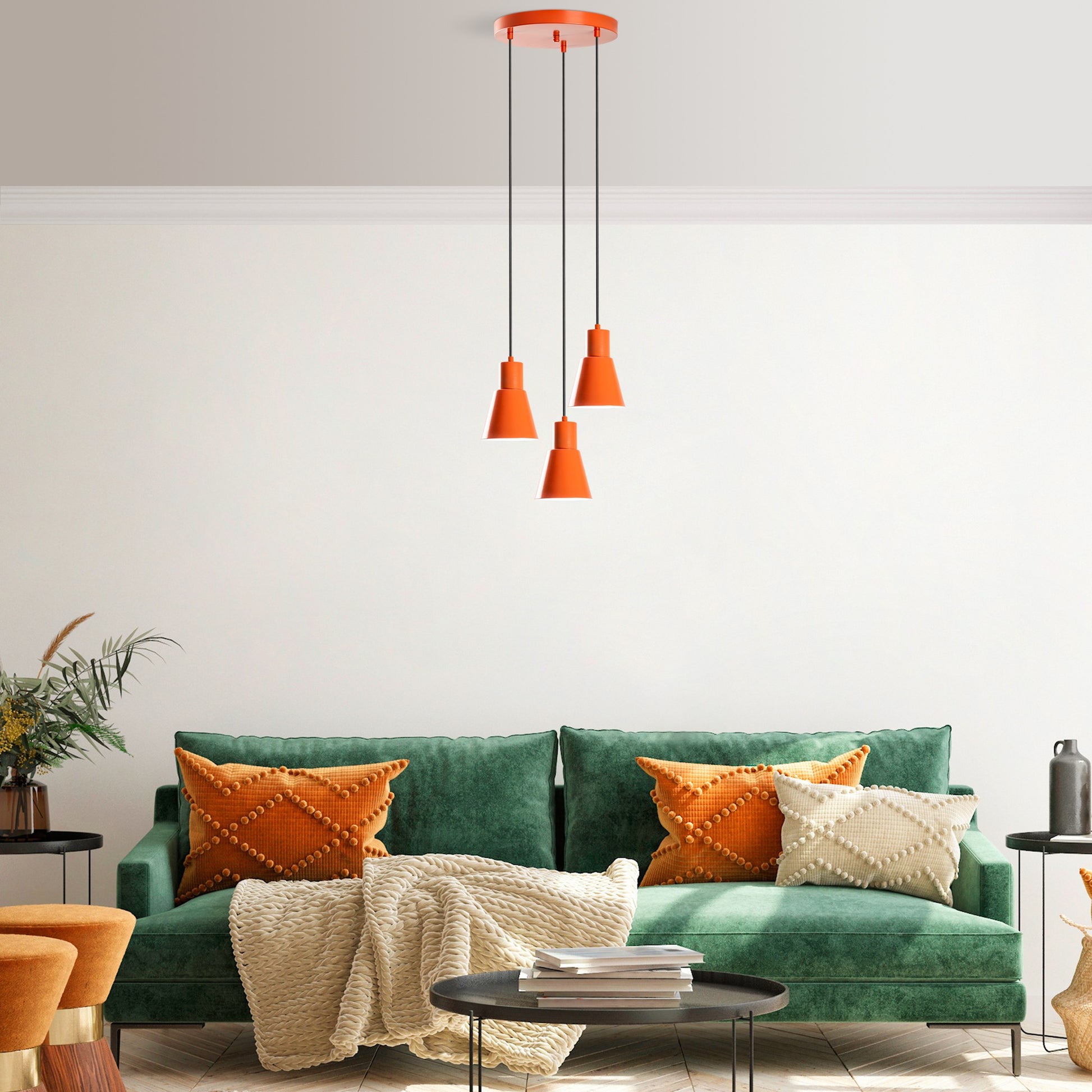 O corpo metálico deste candeeiro não só é resistente e duradouro, como também dá um toque moderno e elegante à decoração da sua casa. A cor laranja vibrante ilumina instantaneamente qualquer divisão, tornando-o a peça perfeita para a sua sala de estar, sala de jantar ou quarto.