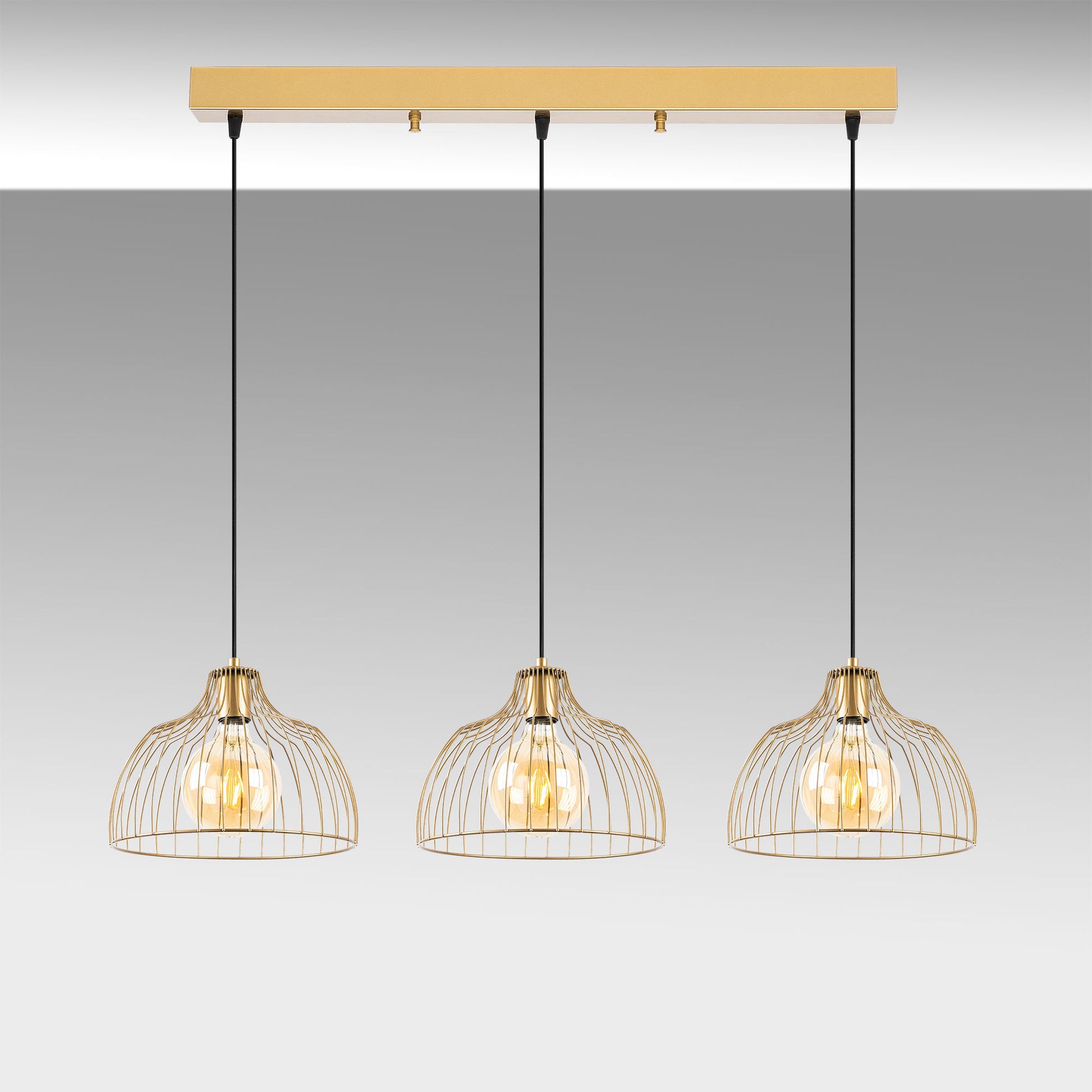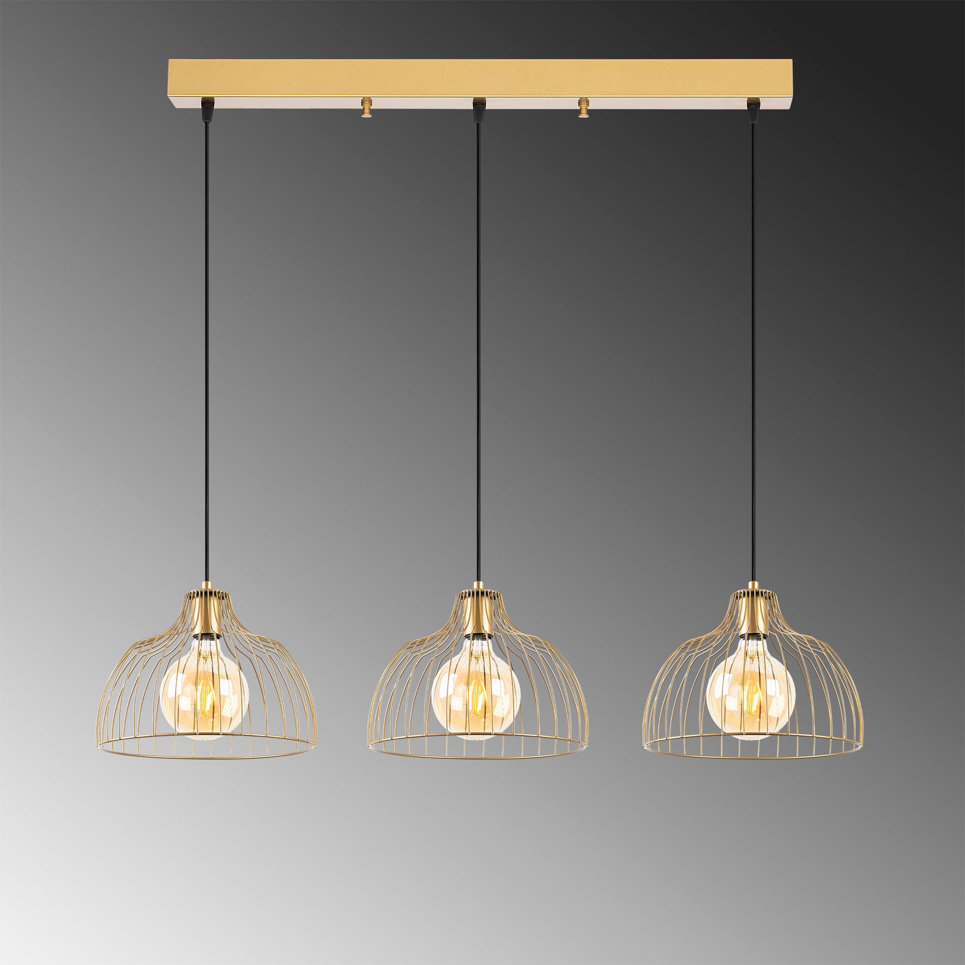 Candeeiro de Teto Dourado Elegante, Corpo em Metal, 101 x 28 x 126 cm | Altura Ajustável, 3 x E27, Máx. 40 W | Design Glamour Moderno para Interiores Elegantes
