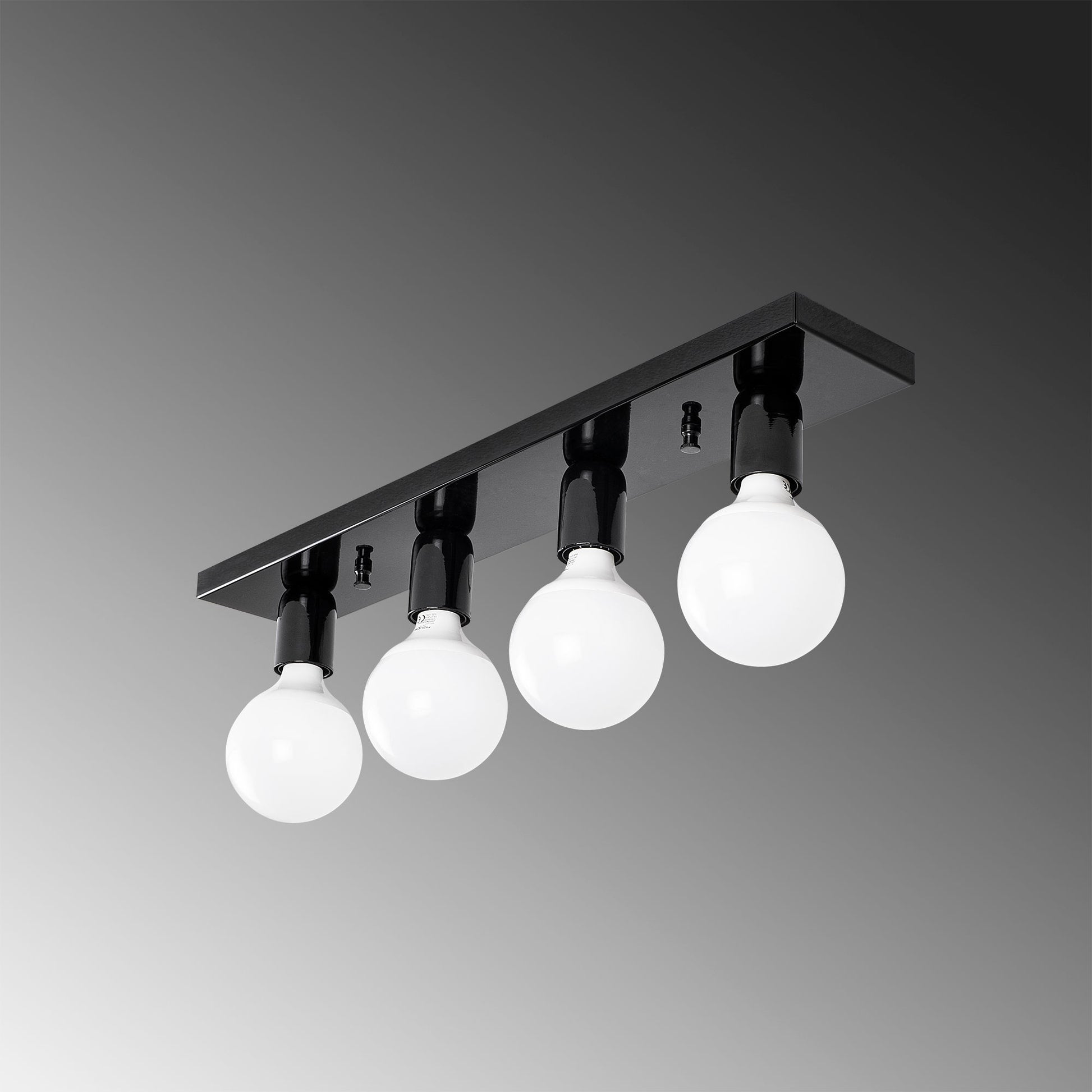 Candeeiro de Teto Industrial Escandinavo, Preto e Branco, 60 x 10 x 10 cm | Corpo em Metal, 4 Soquetes E27, IP20 | Iluminação Elegante para Espaços Modernos