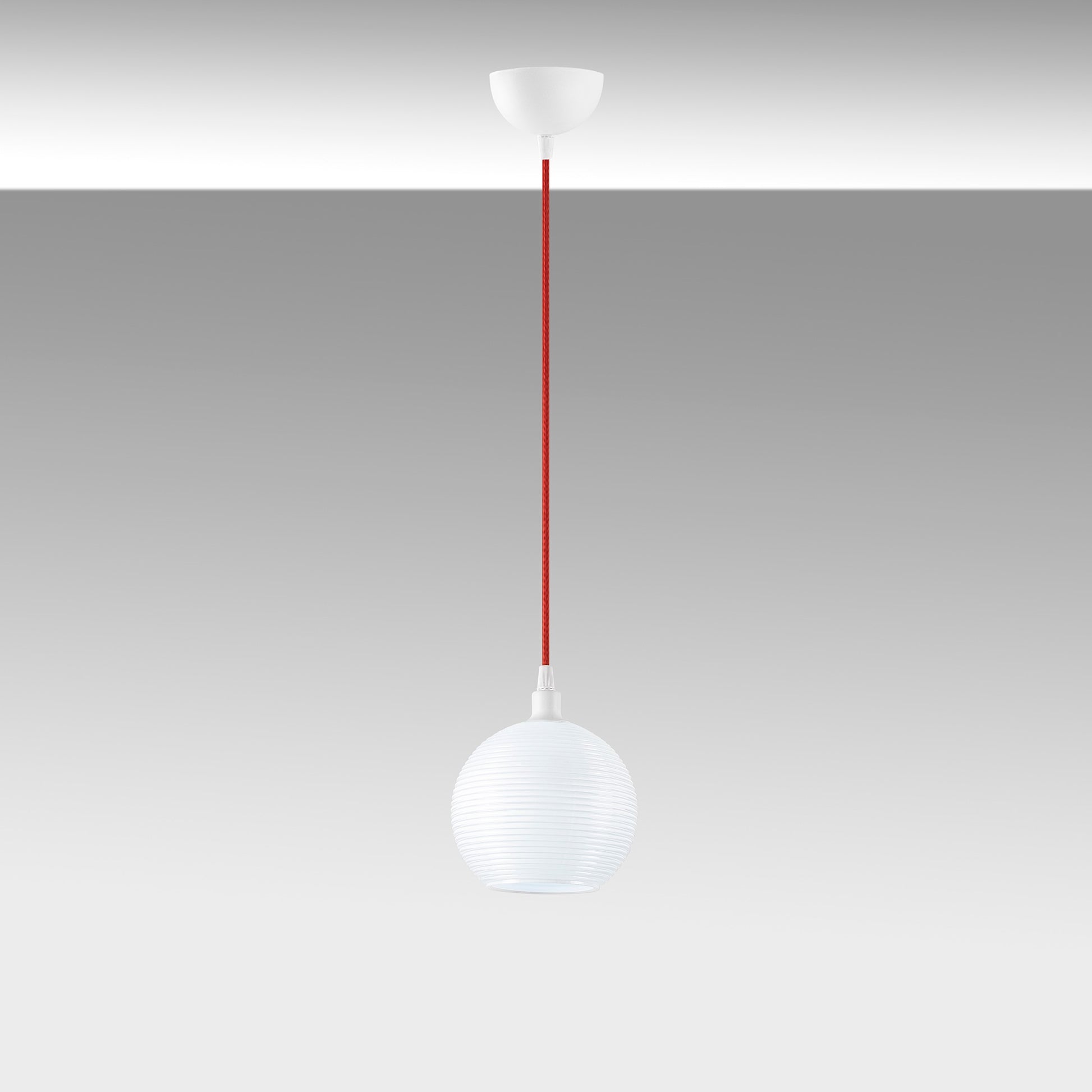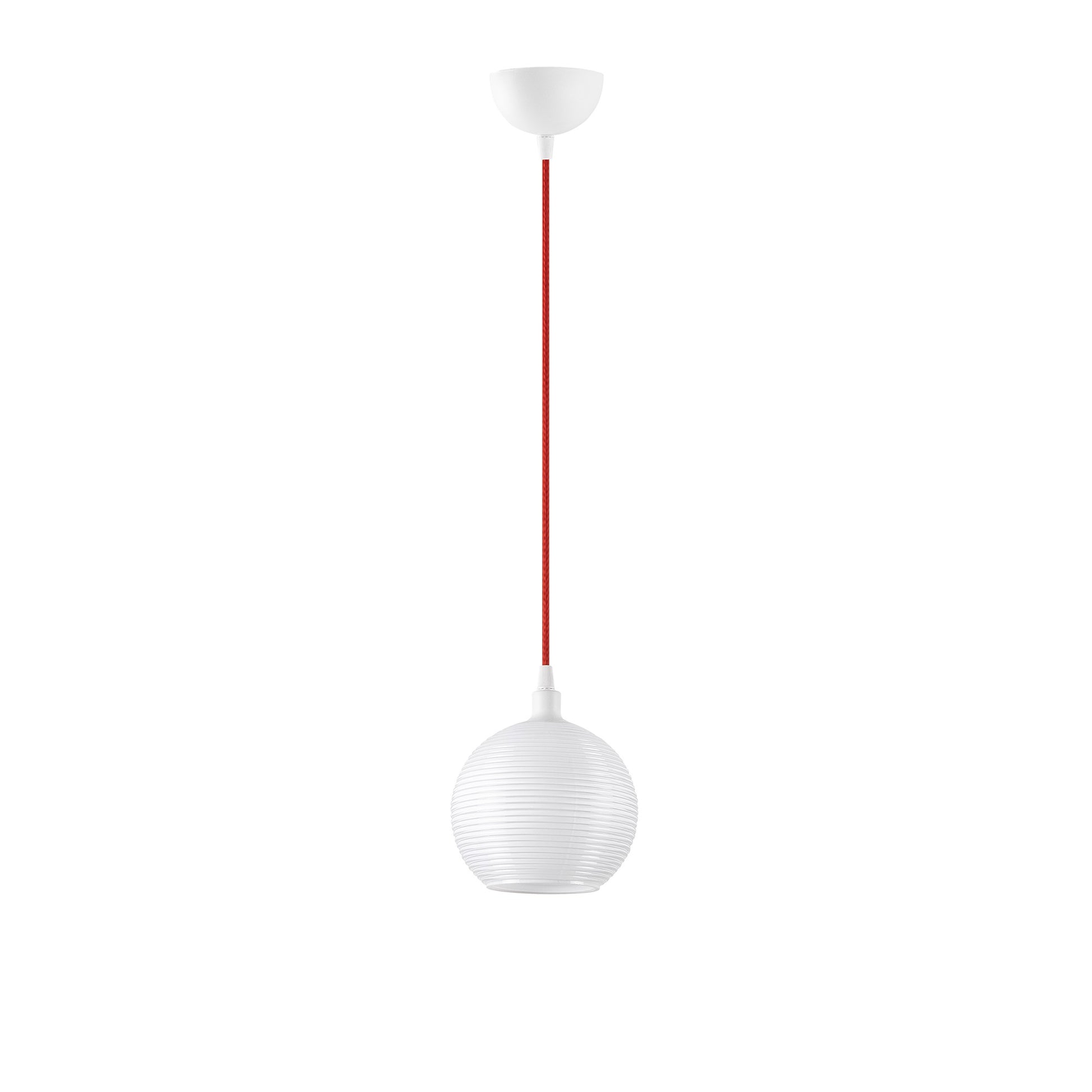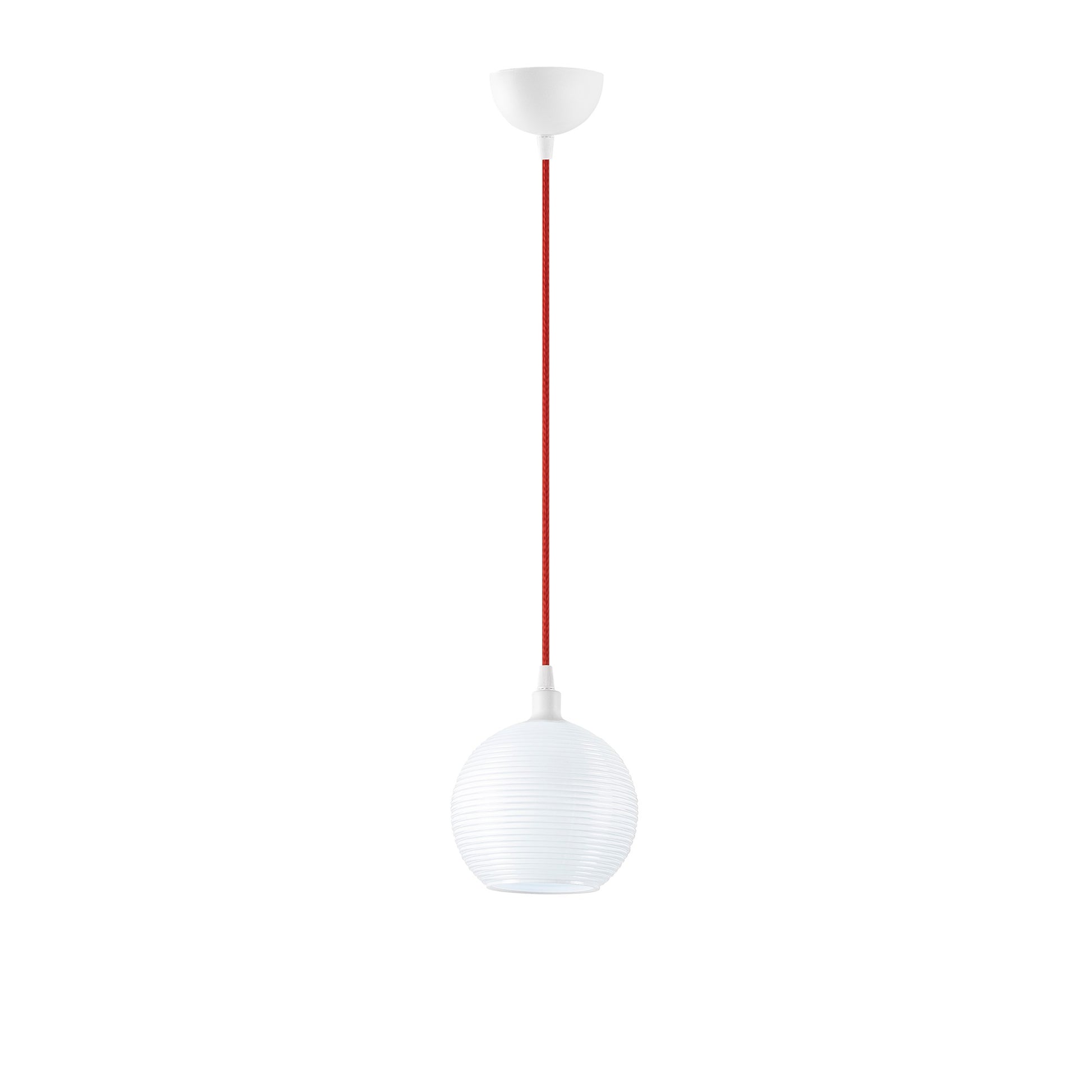 Candeeiro de Teto Escandinavo, Corpo de Metal com Tampa de Vidro, 15x15 cm, Altura 110 cm, Ajustável, E27 Máx. 40 W, Branco e Vermelho | Iluminação Elegante para Espaços Modernos