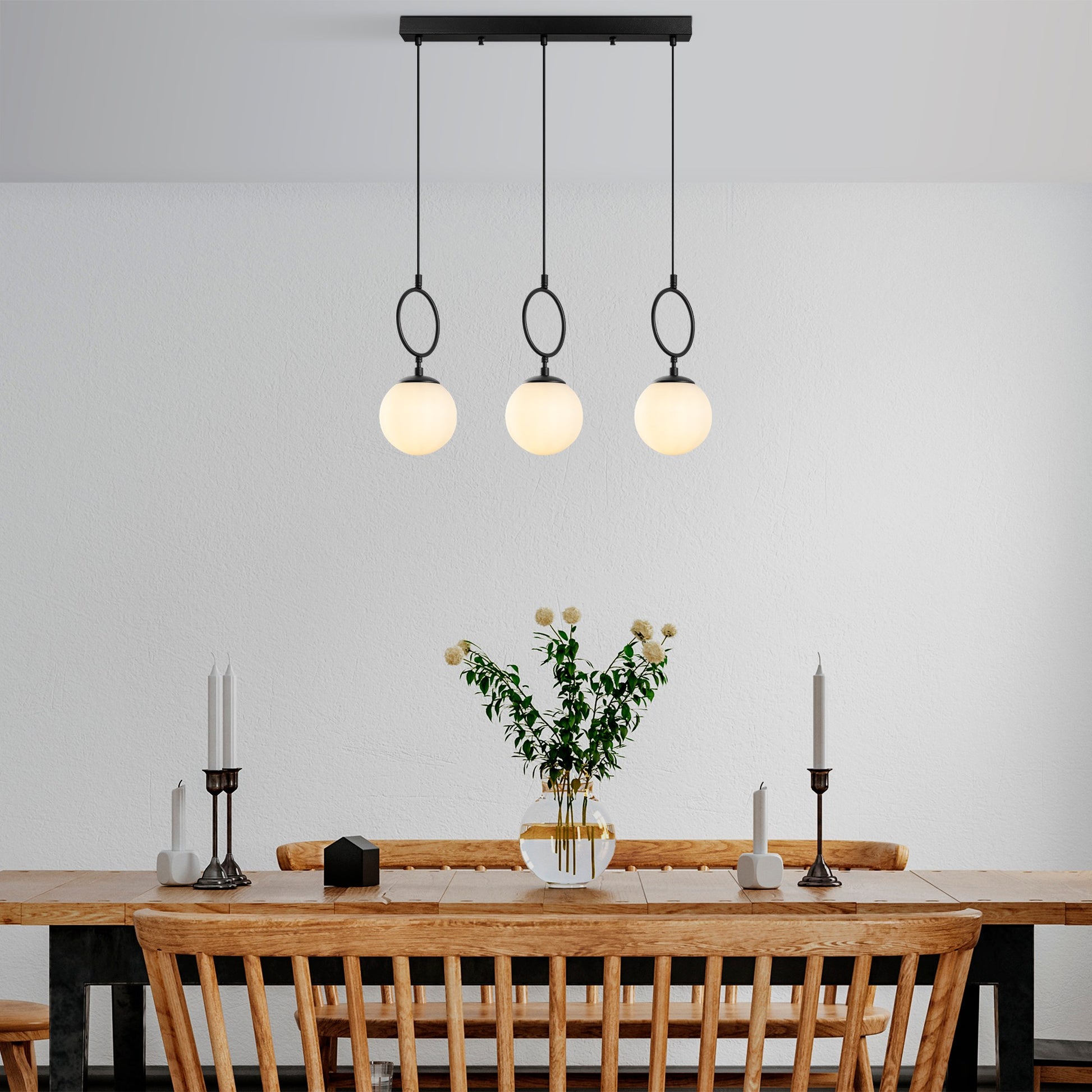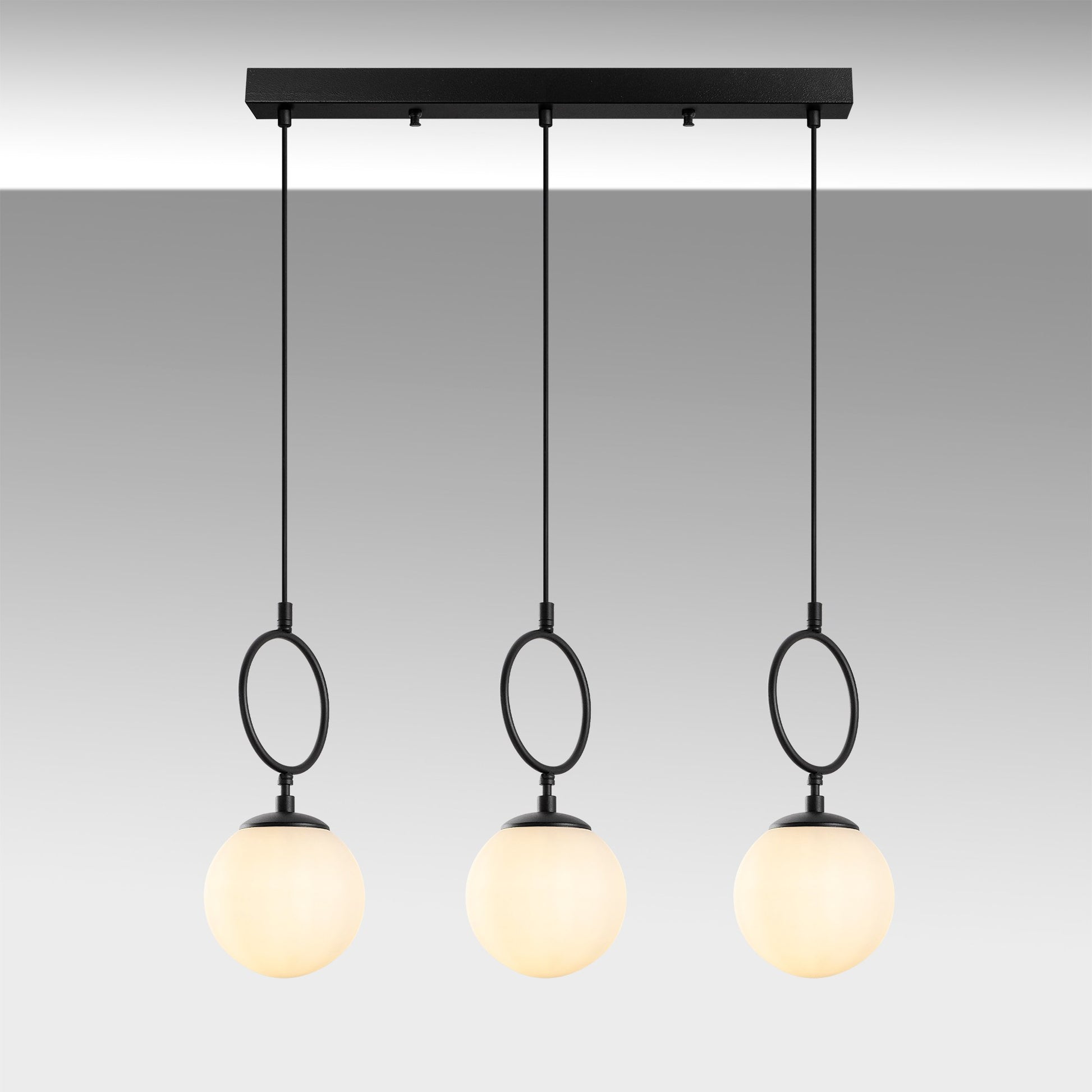 Candeeiro de Teto Preto Elegante, Corpo em Metal, 75 cm de Largura, Altura Ajustável (40-185 cm), 3 Soquetes E14, IP20 | Iluminação Moderna para Casa e Escritório
