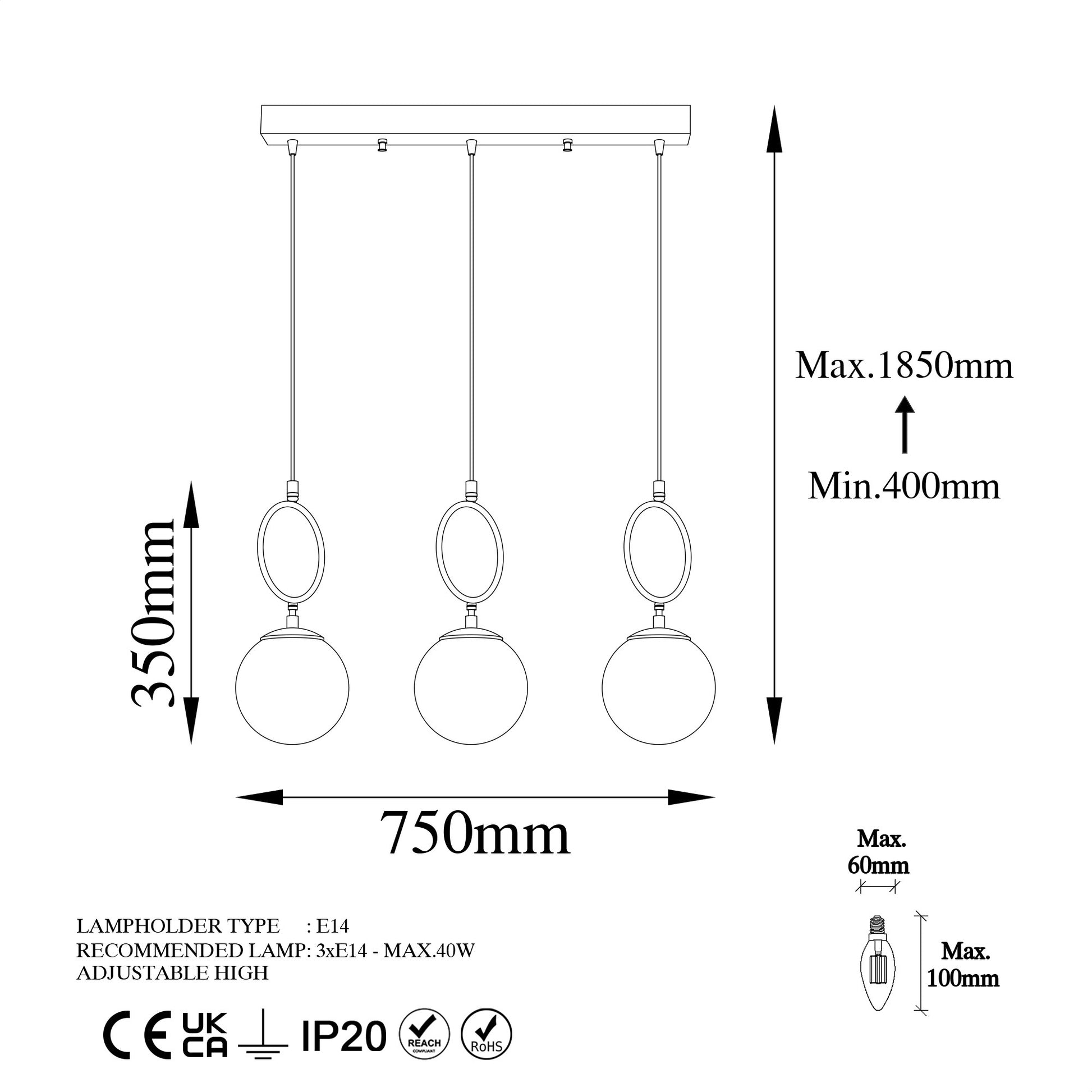- Tipo de tomada: 3 x E14 Max 40 W para uma iluminação ampla