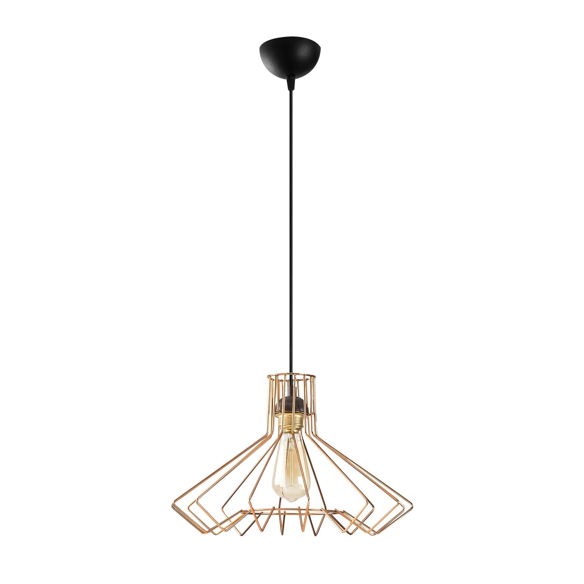 Candeeiro de Teto Elegante em Cobre e Preto, 41 cm de Diâmetro, Altura Ajustável 123 cm | Corpo em Metal, Soquete E27, IP20 | Perfeito para Decoração Glamourosa