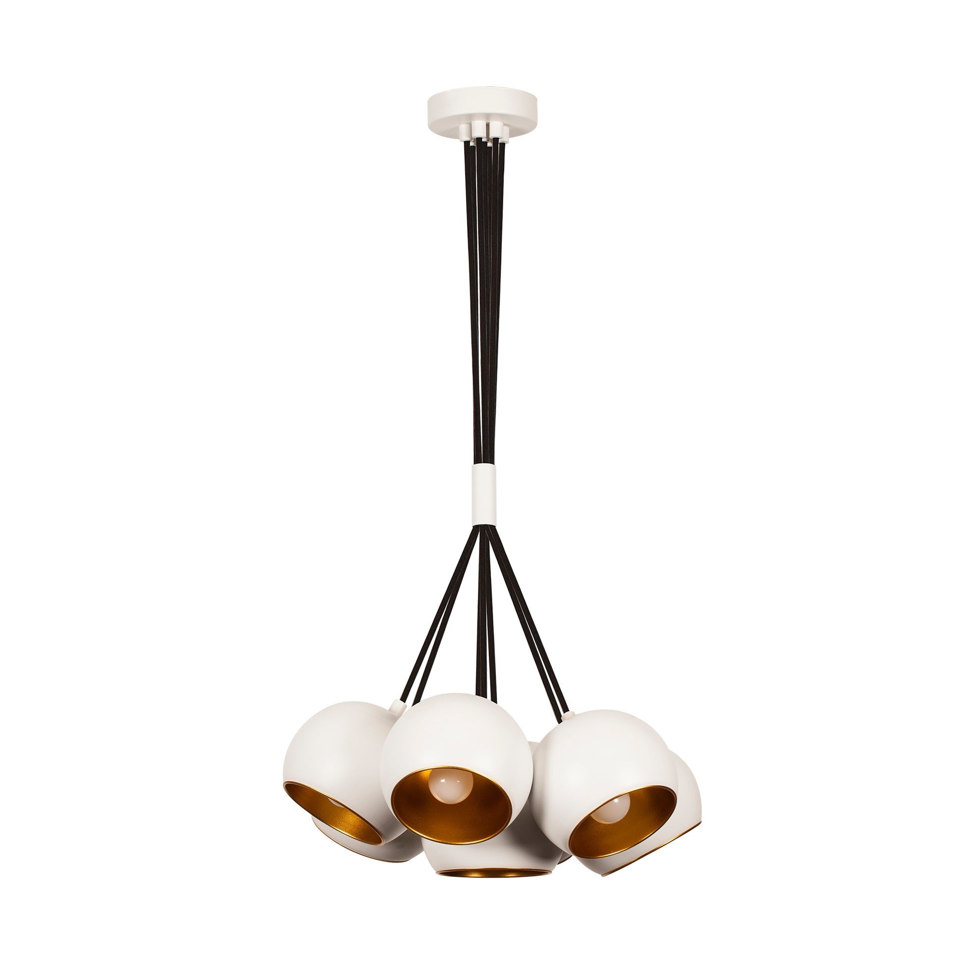 Candeeiro de Teto Elegante Branco e Dourado, 45 cm de Diâmetro, Altura Ajustável, Corpo em Metal, 7 Soquetes E27, Design Escandinavo Moderno | Perfeito para Decoração de Casa