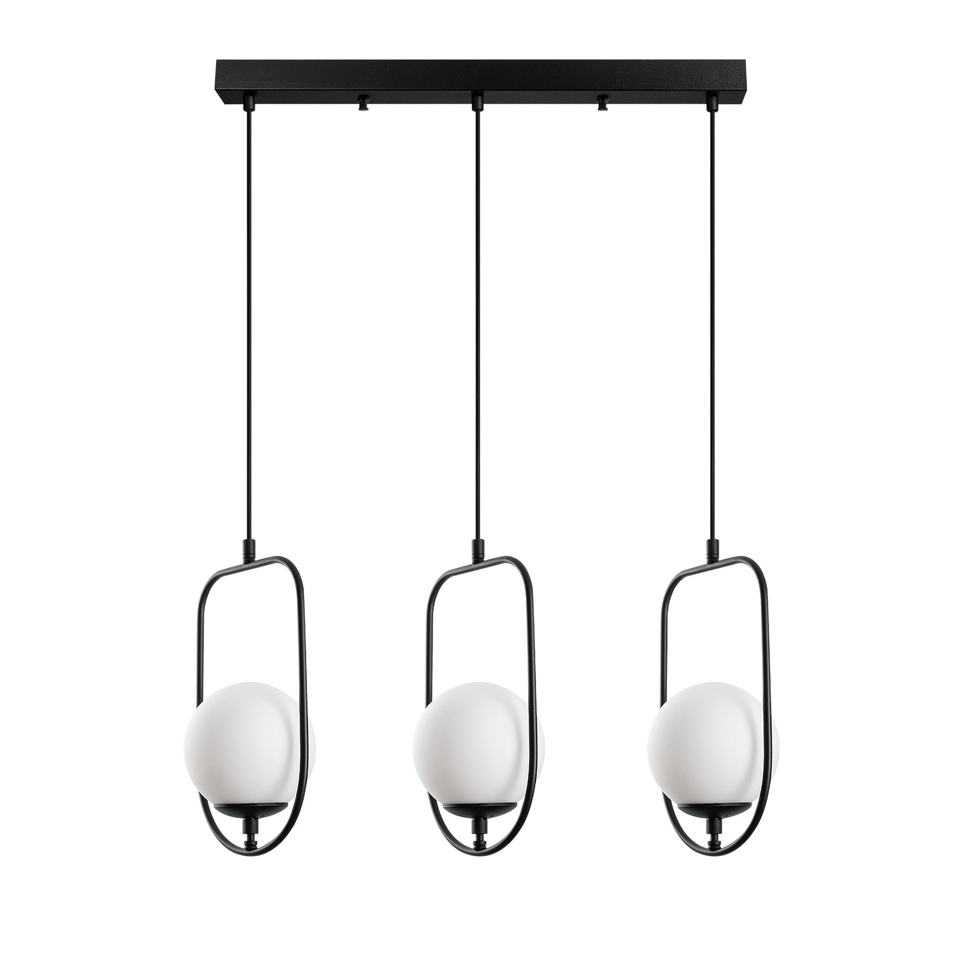 Candeeiro de Teto preto elegante, corpo de metal, 80 cm de largura, altura ajustável (40-185 cm), 3 soquetes E14, design moderno para iluminação residencial e de escritório