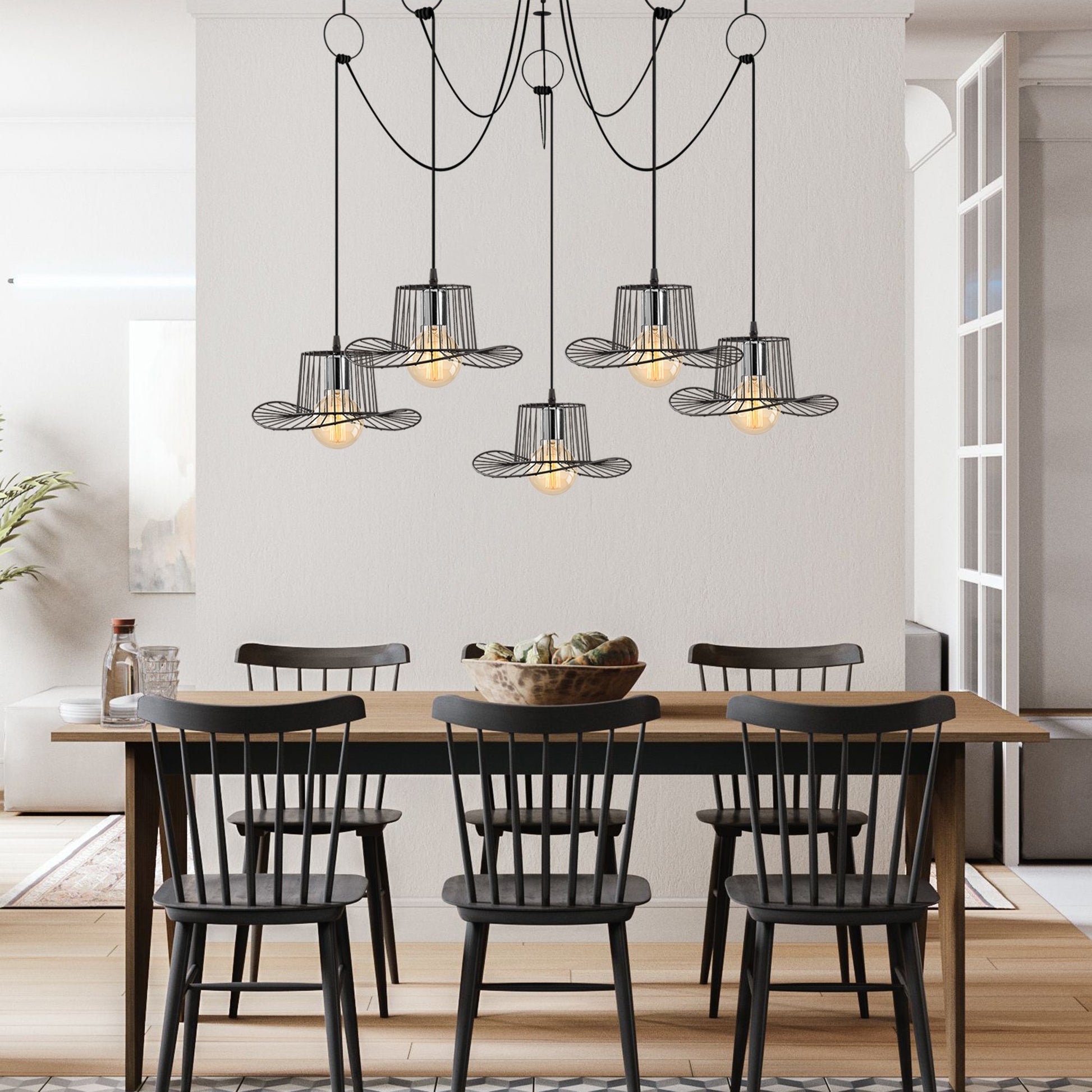 O nosso candeeiro preto é fornecido com instruções de instalação e todos os aparelhos de ligação necessários, garantindo um processo de instalação sem problemas. O seu design moderno e inovador combina na perfeição com qualquer decoração interior, tornando-o uma escolha versátil para quartos, salas de jantar ou mesmo espaços comerciais.