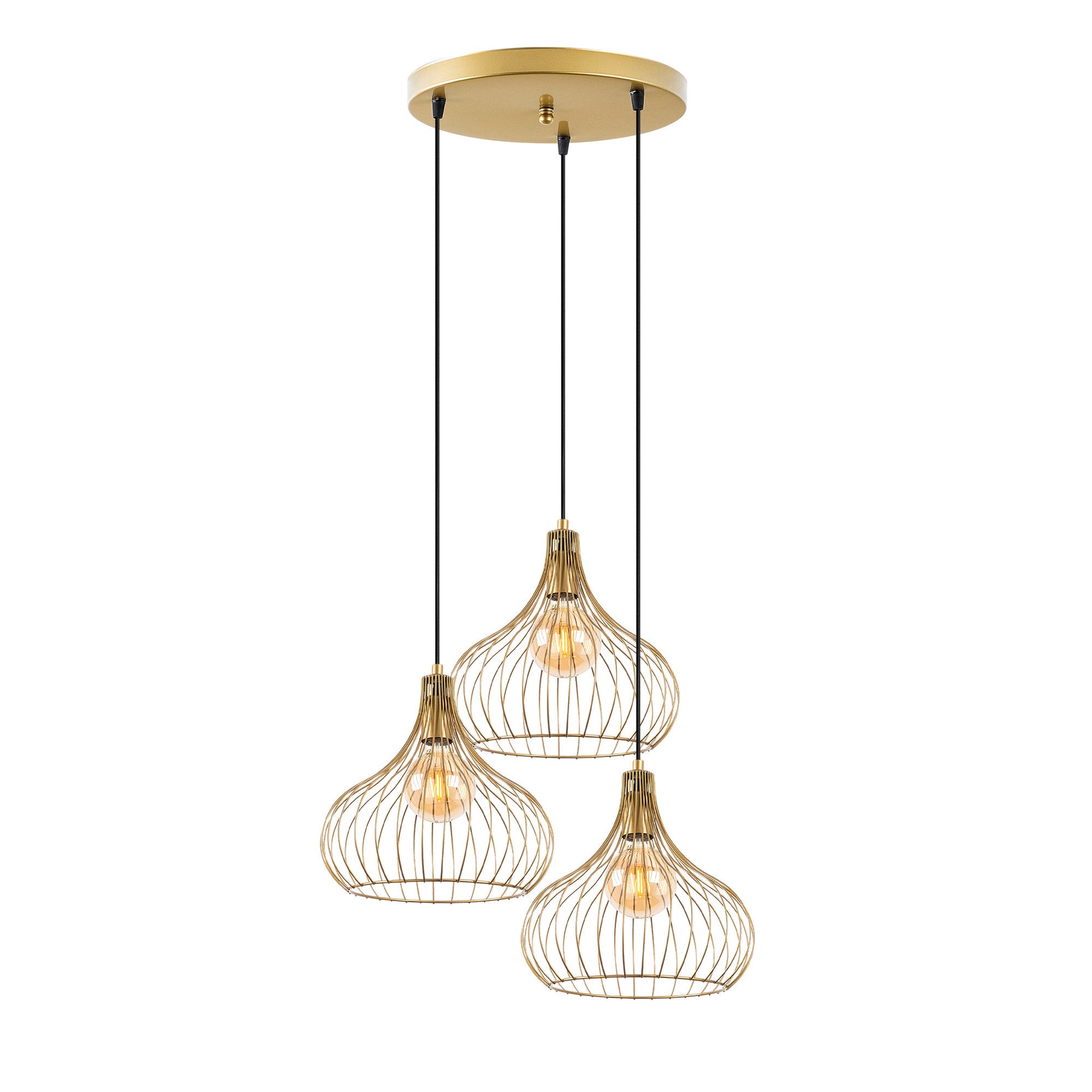 Candeeiro de Teto Dourado Elegante, Corpo em Metal, 47 x 47 x 120 cm | Altura Ajustável, 3 Soquetes E27, Design Moderno e Glamouroso | Perfeito para Salas de Estar e Salas de Jantar