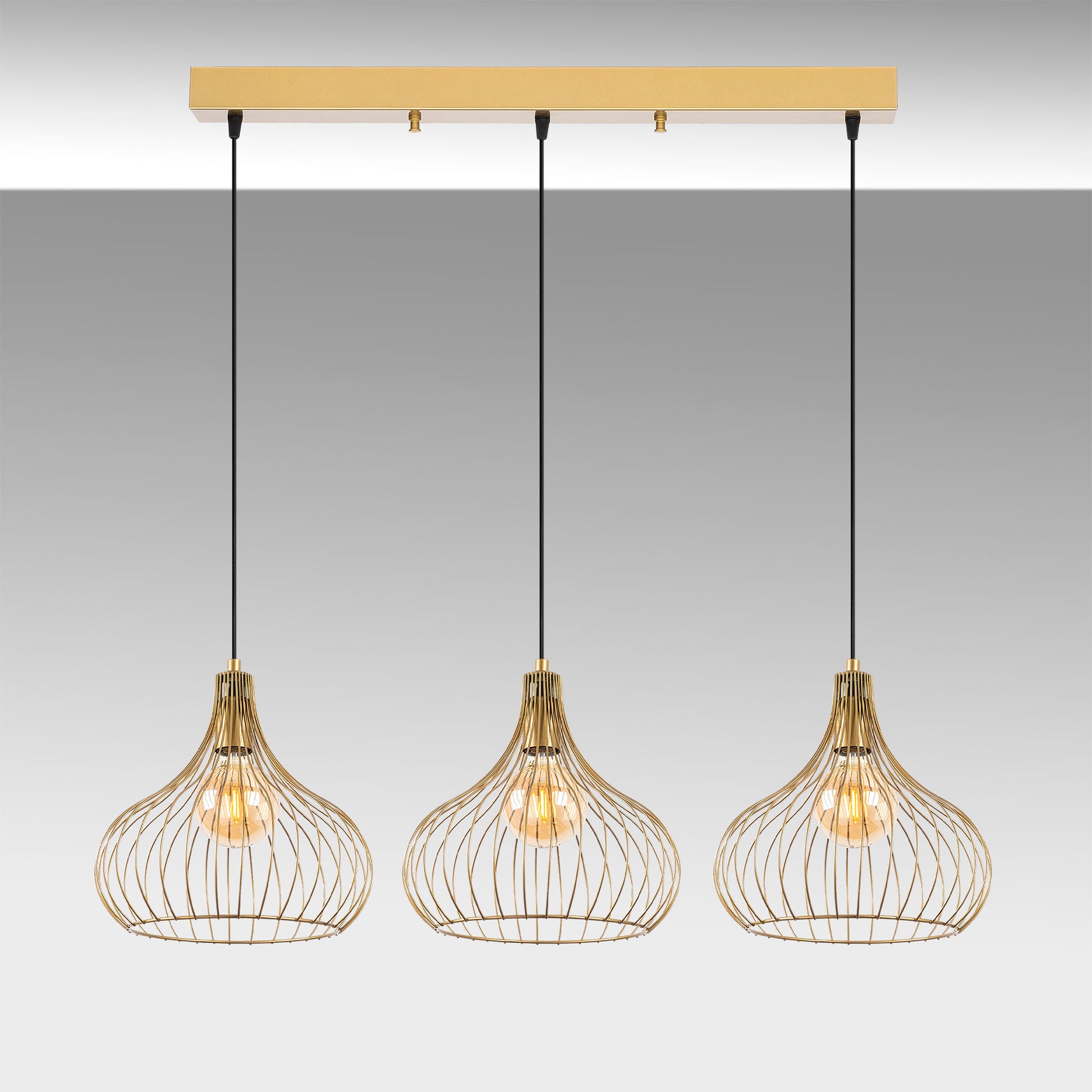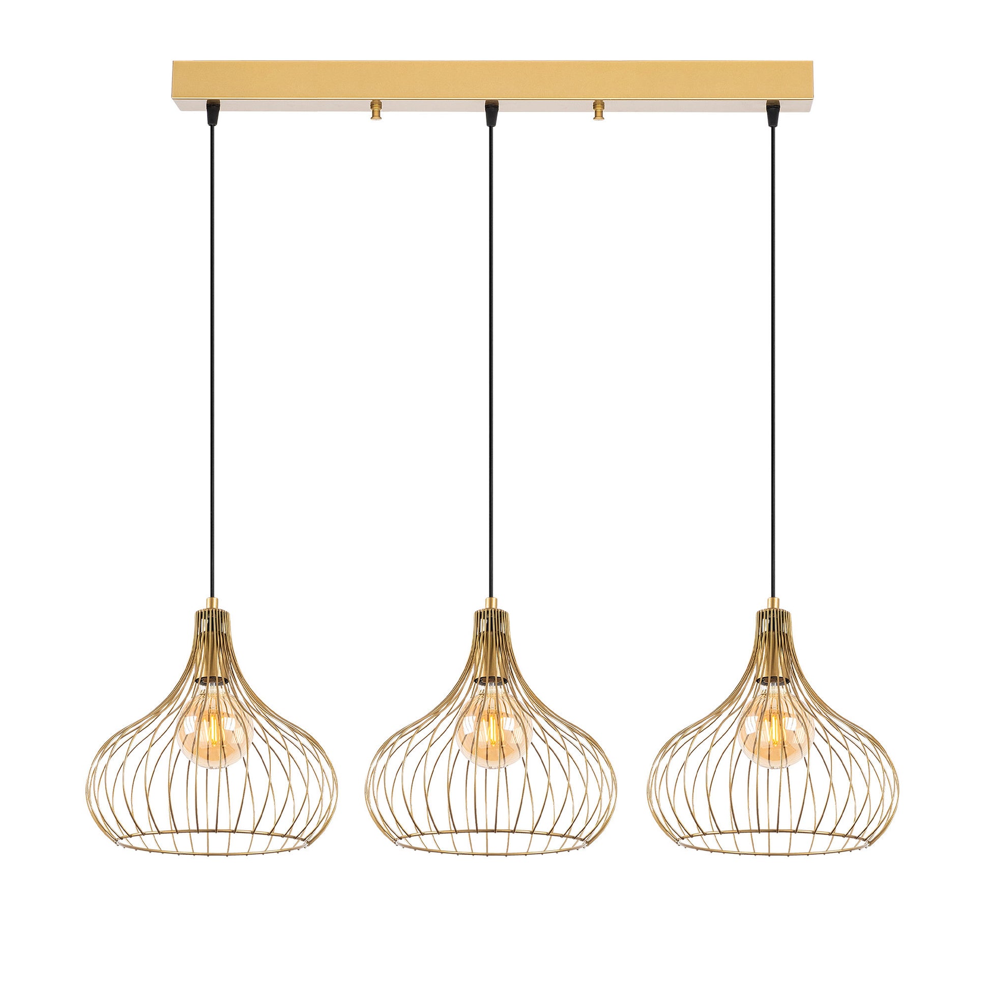 Candeeiro de Teto Dourado Elegante, Corpo em Metal, 76 x 22 x 120 cm | Altura Ajustável, 3 Soquetes E27, Design Moderno e Glamouroso | Perfeito para Salas de Estar e Jantar