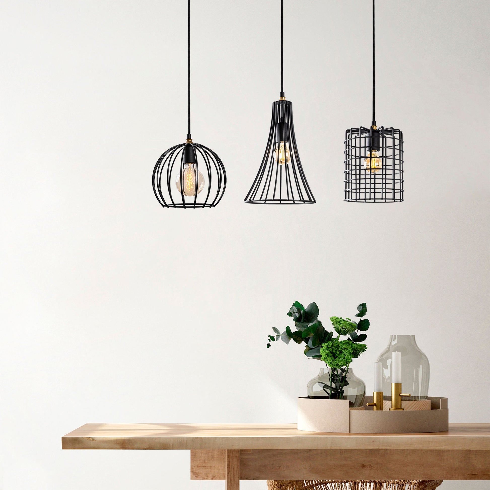 Candeeiro de Teto industrial com corpo de metal, altura ajustável de 49 a 129 cm, acabamento preto e antigo, 3 soquetes E27, perfeito para decoração moderna de casa