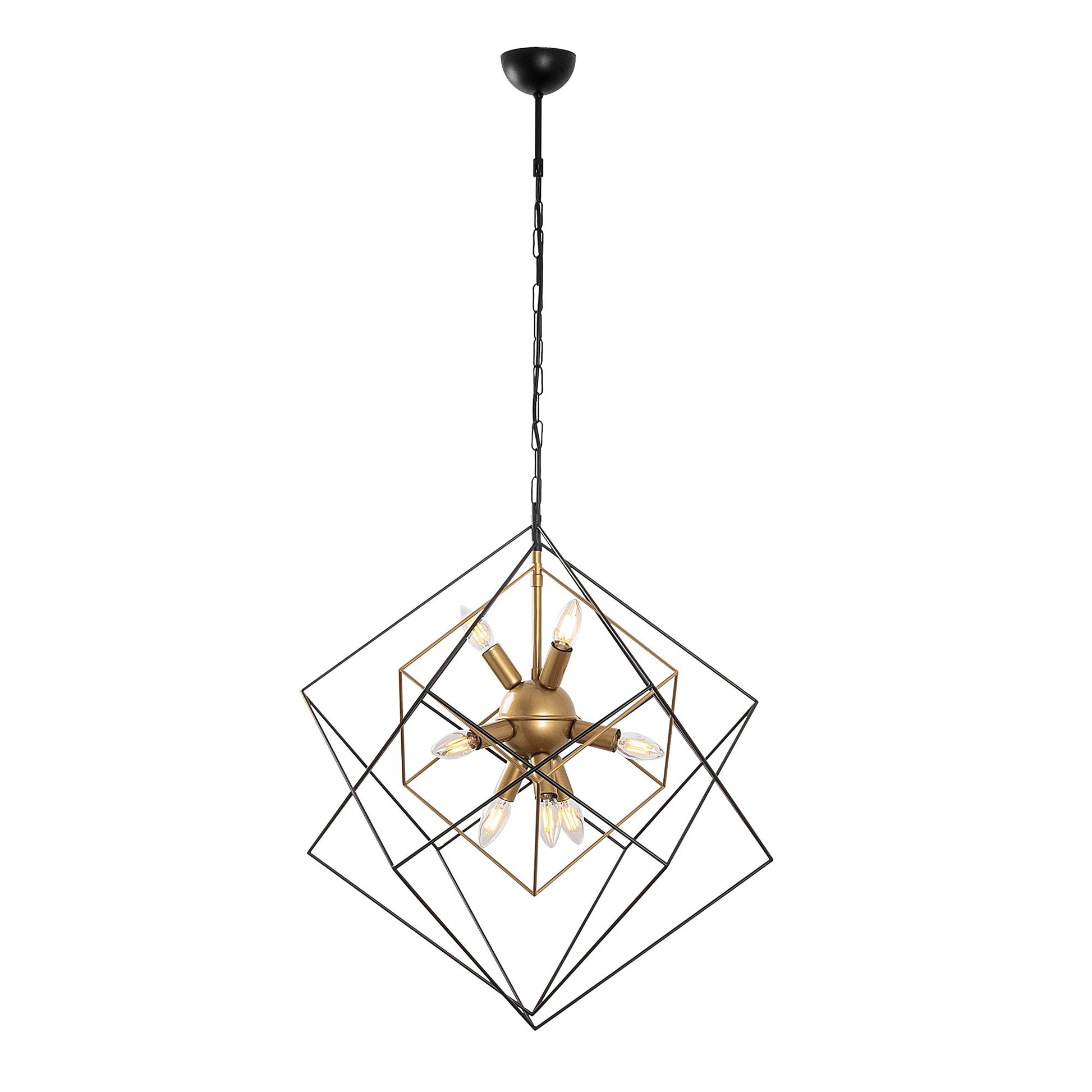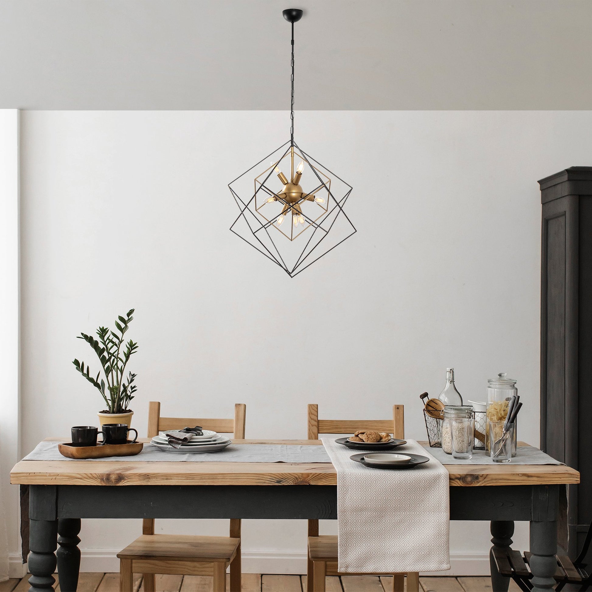 Candeeiro de Teto Industrial, Corpo em Metal, Acabamento Preto e Antigo, 62 x 62 x 125 cm | 9 x E14 Máx. 40 W | Iluminação Elegante para Espaços Modernos, Classificação IP20