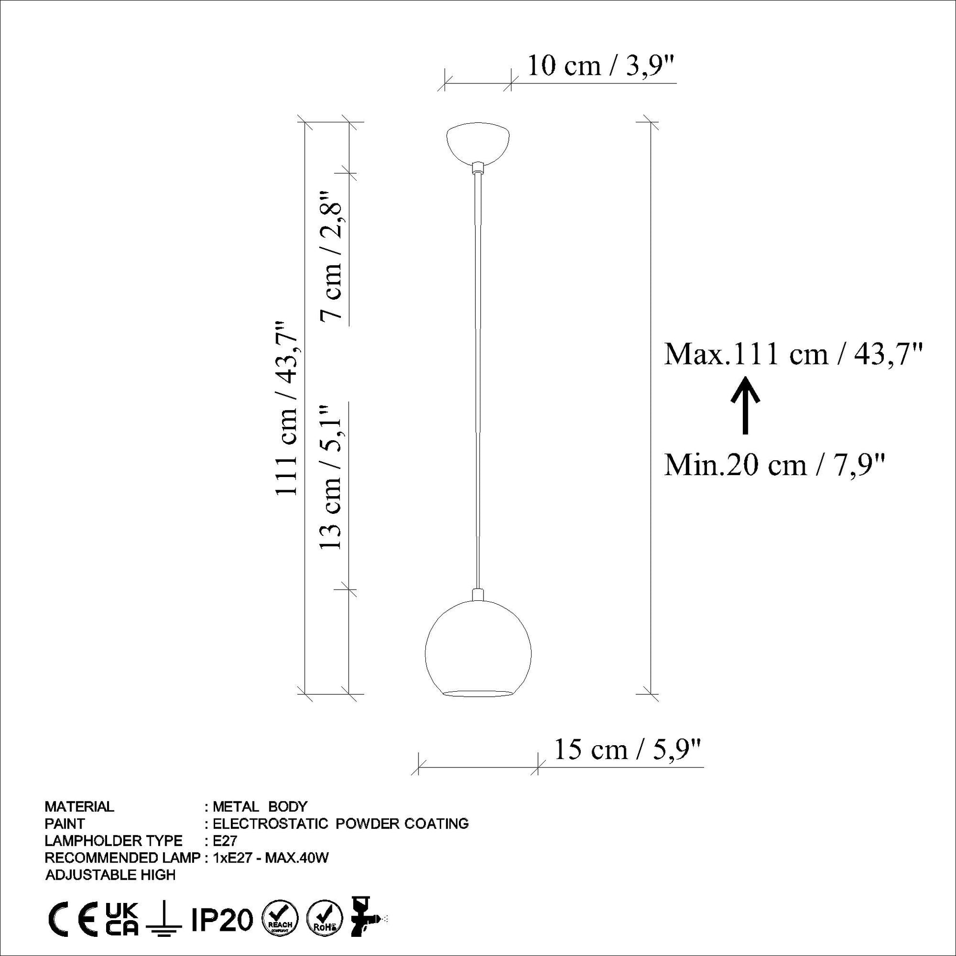 - Tipo de tomada: 1 x E 27 Max 40 W