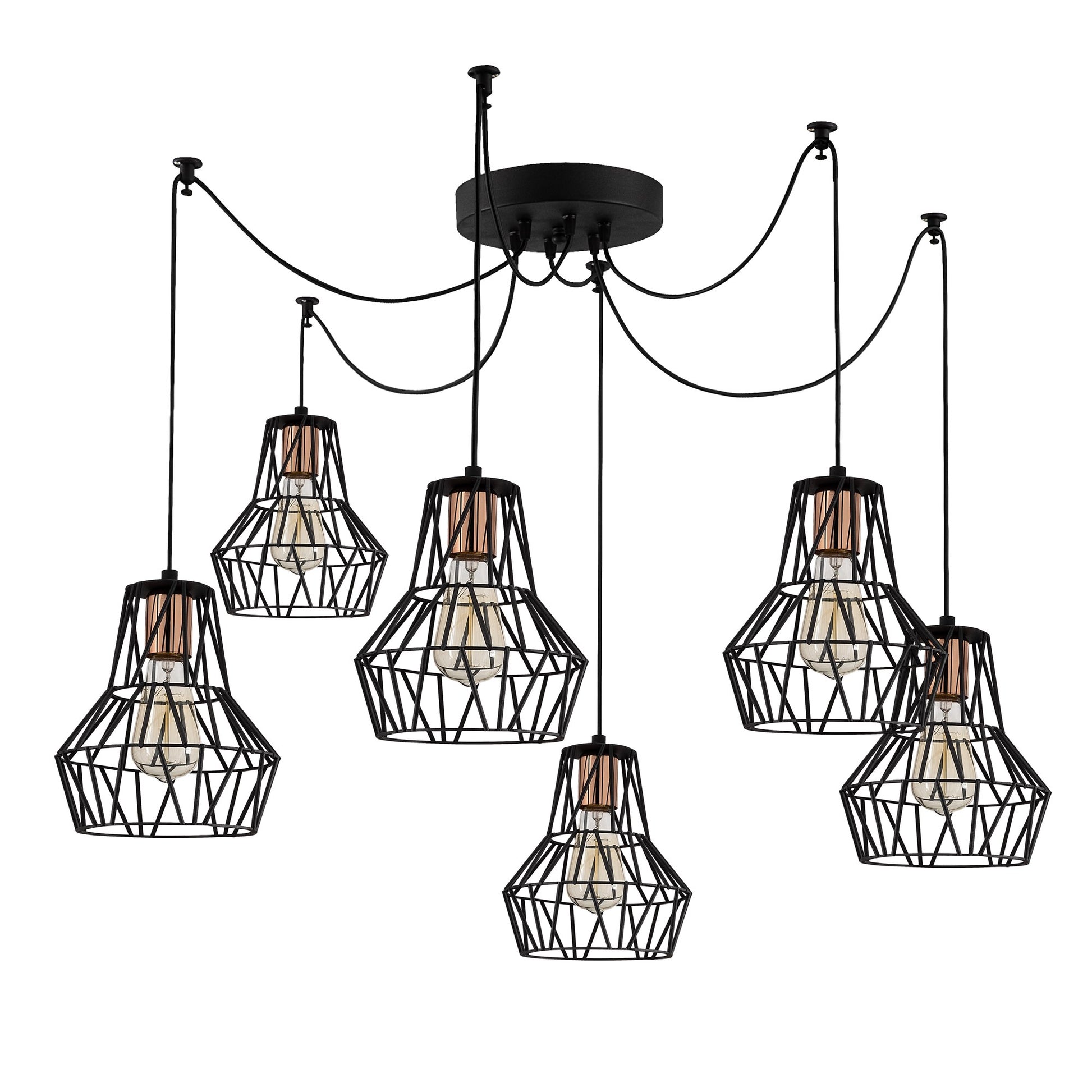 Candeeiro de Teto Industrial, Corpo em Metal Preto, 140 cm de Diâmetro, 113 cm de Altura | 6 Soquetes E27, IP20 | Iluminação Elegante para Espaços Modernos