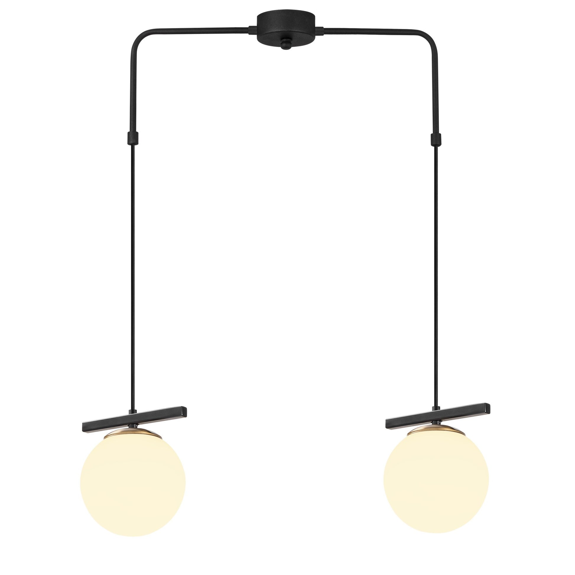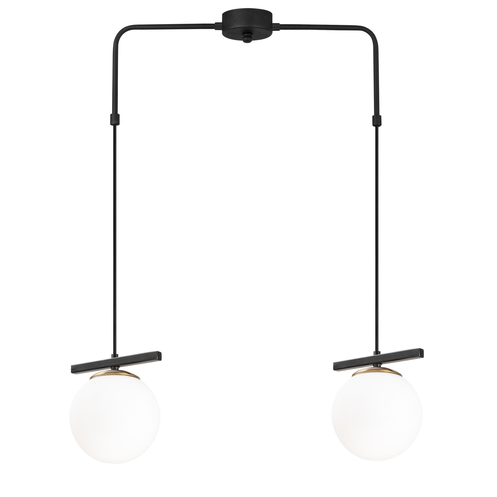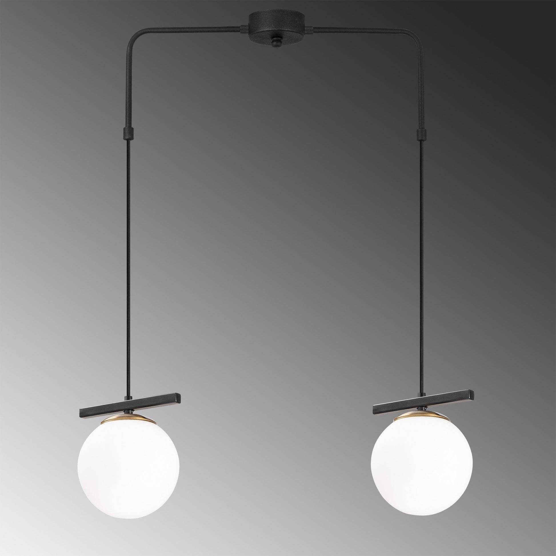 Candeeiro de Teto Industrial Moderno, Preto e Branco, 64 x 15 cm | Altura Ajustável, Corpo em Metal, Tampa de Vidro, 2 Soquetes E27 | Iluminação Elegante para Casa e Escritório