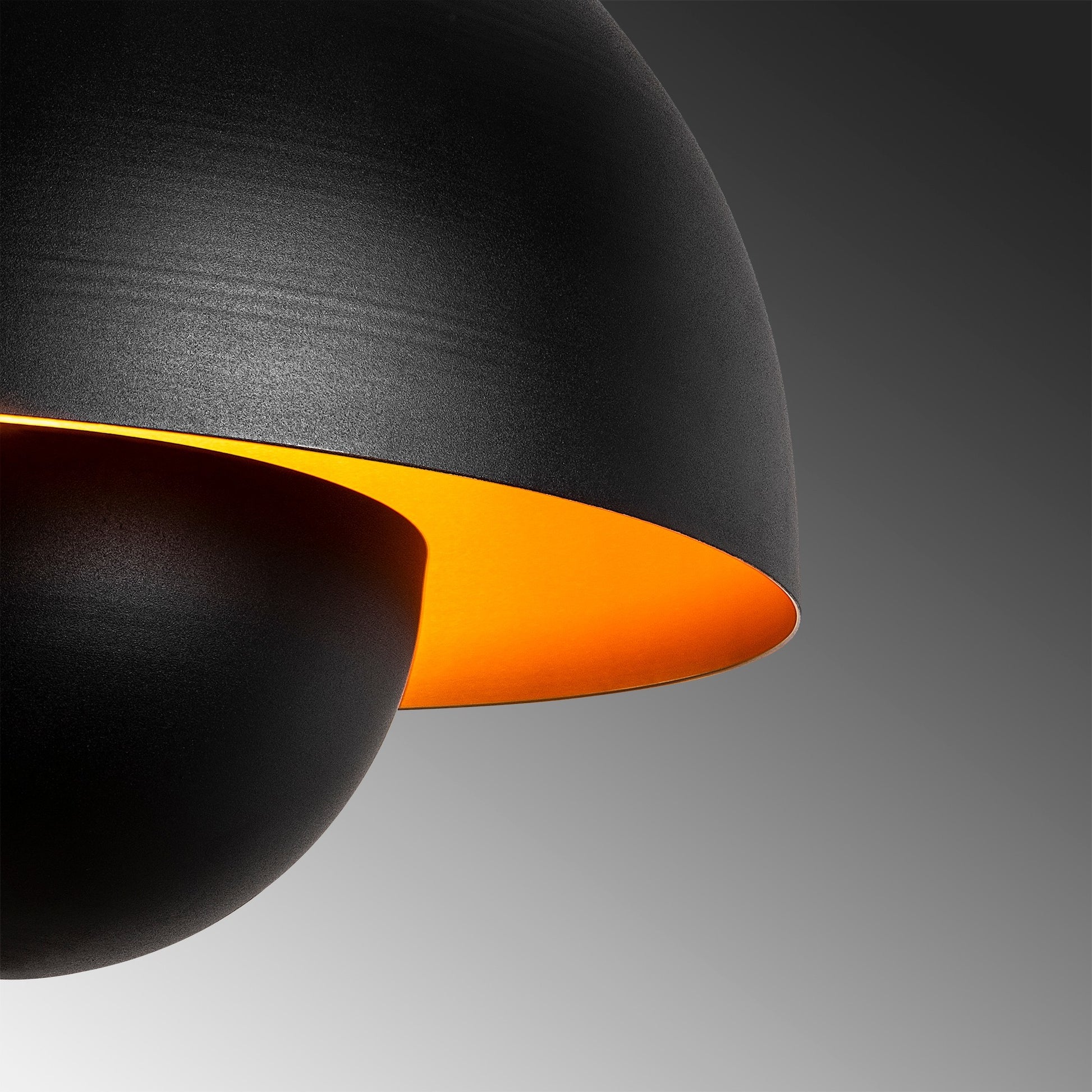 Fabricado com um corpo metálico robusto, este candeeiro exala durabilidade e resistência. O elegante acabamento em preto acrescenta um toque de luxo, tornando-o um complemento perfeito para interiores contemporâneos e minimalistas. Os tamanhos contrastantes das tampas criam um design visualmente apelativo, acrescentando profundidade e dimensão ao seu espaço.