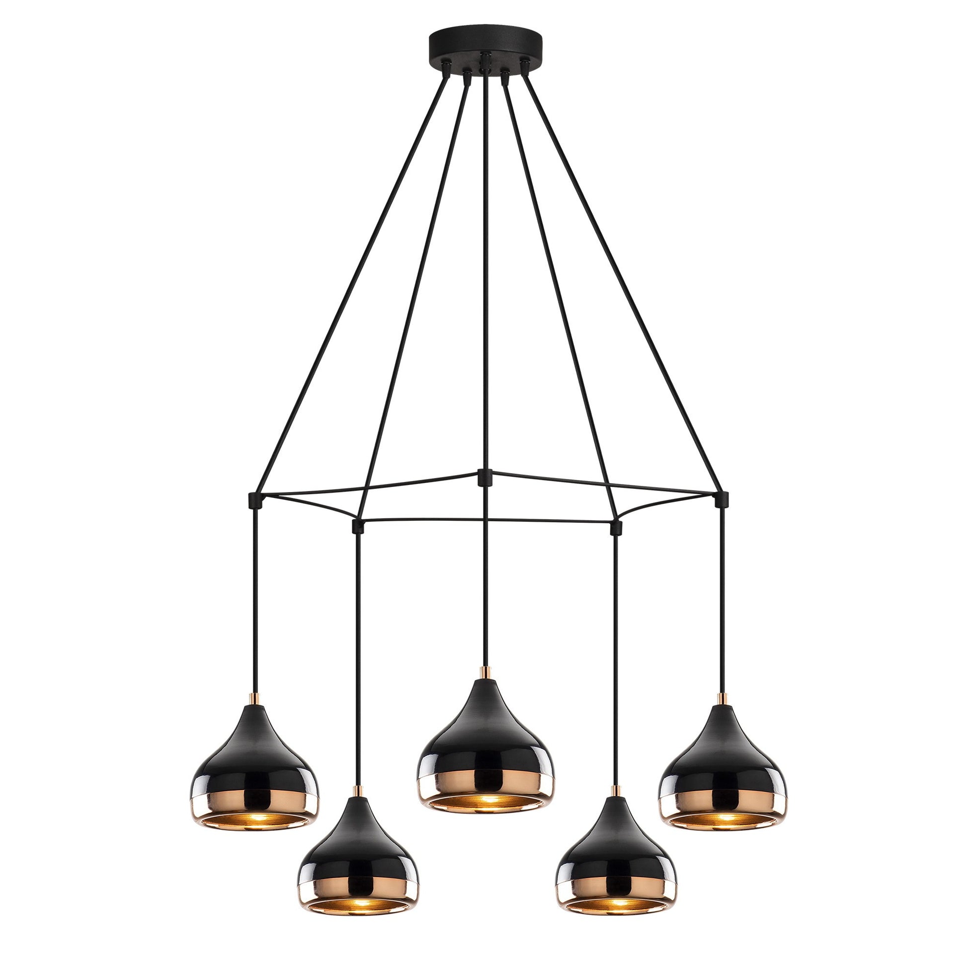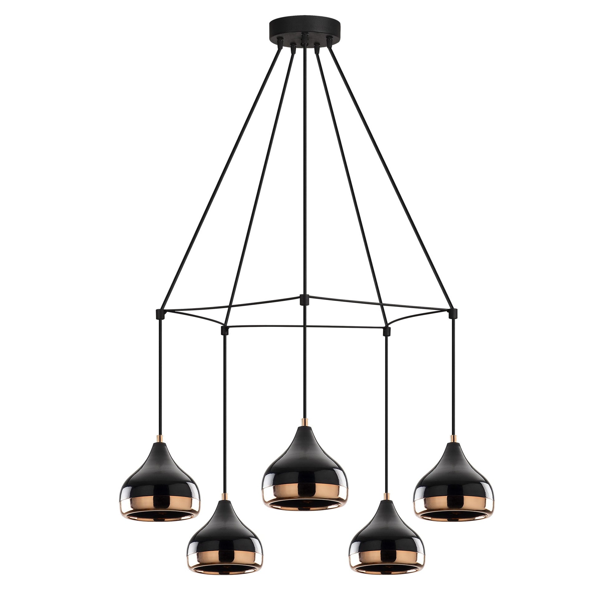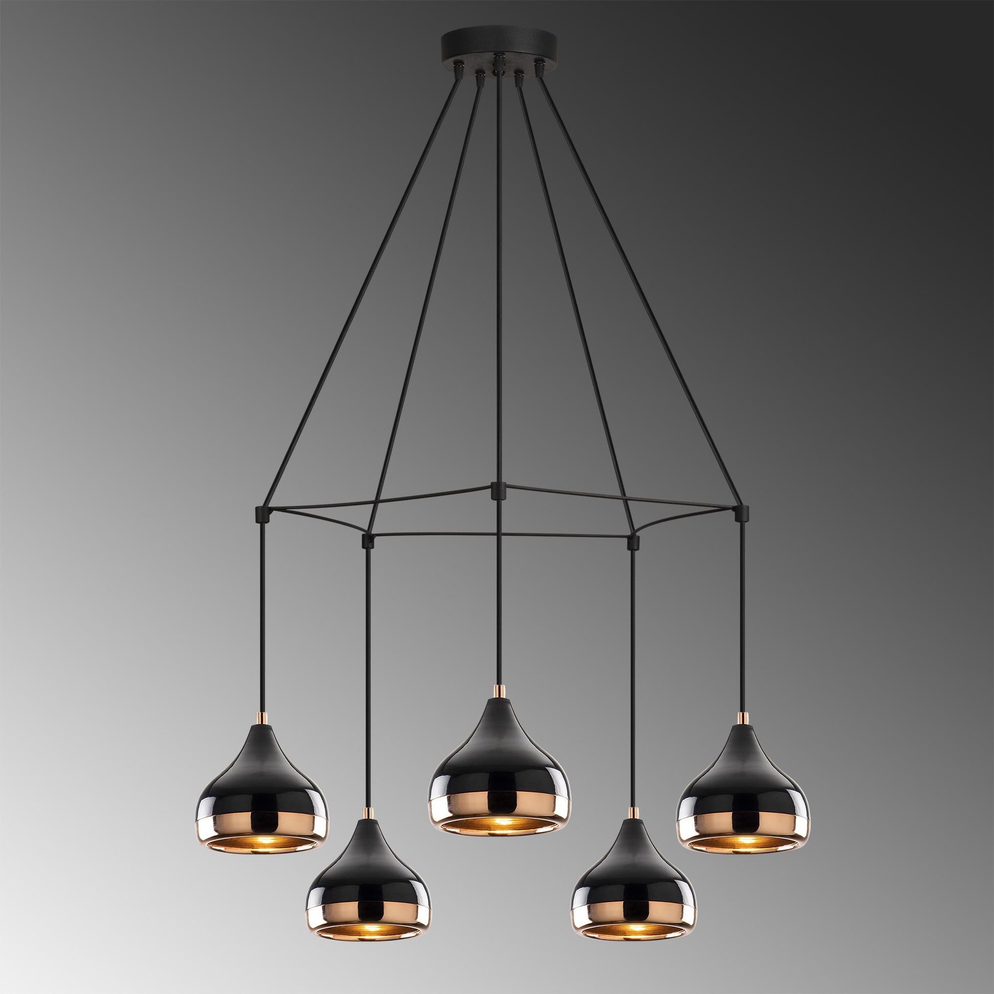 Candeeiro de Teto moderno com corpo de metal, preto e cobre, 68 cm de diâmetro, altura ajustável, 5 soquetes E27 | Design escandinavo elegante para decoração de casa