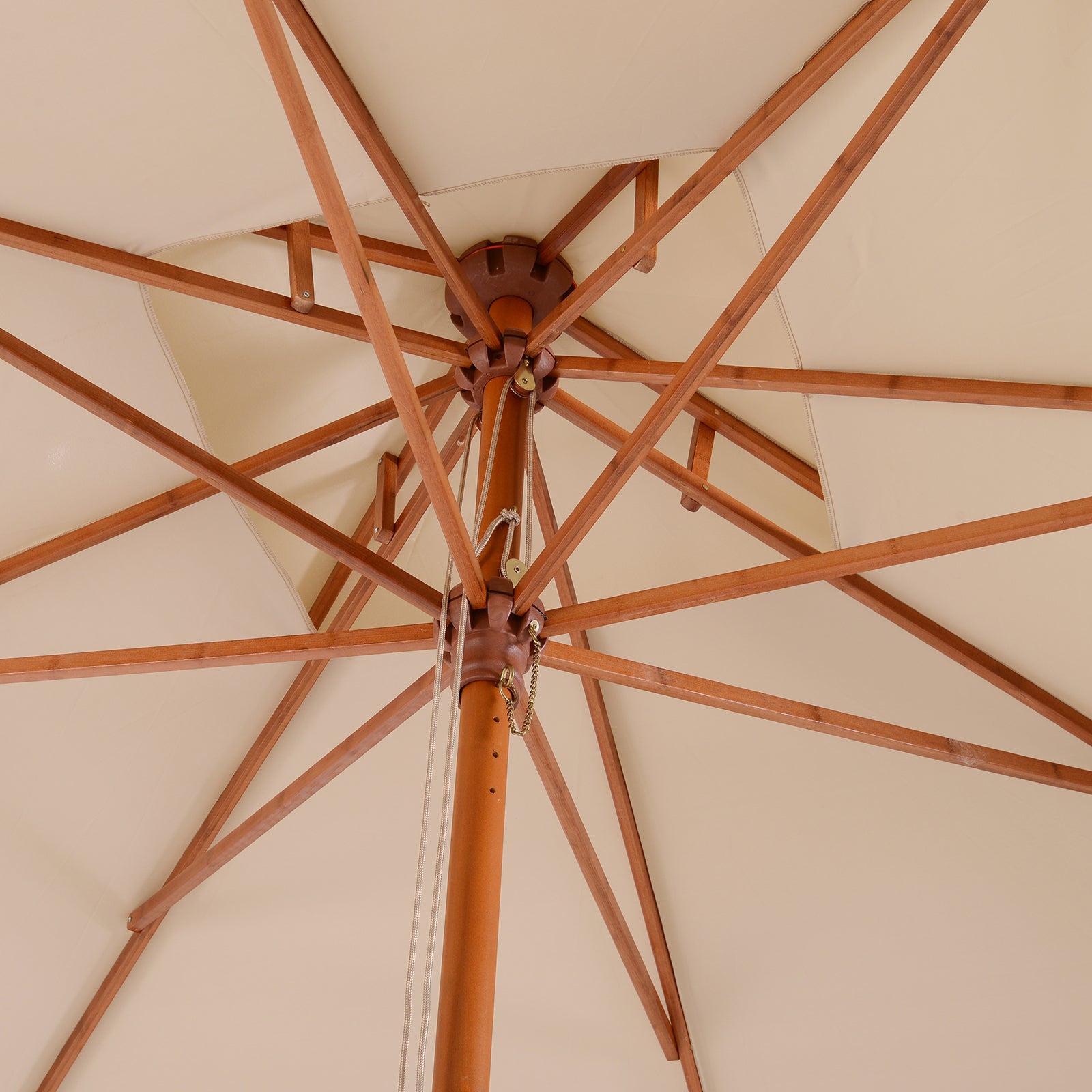 Guarda-Sol de Jardim Bege 300x300x297cm - Estrutura de Madeira e Toldo de Poliéster