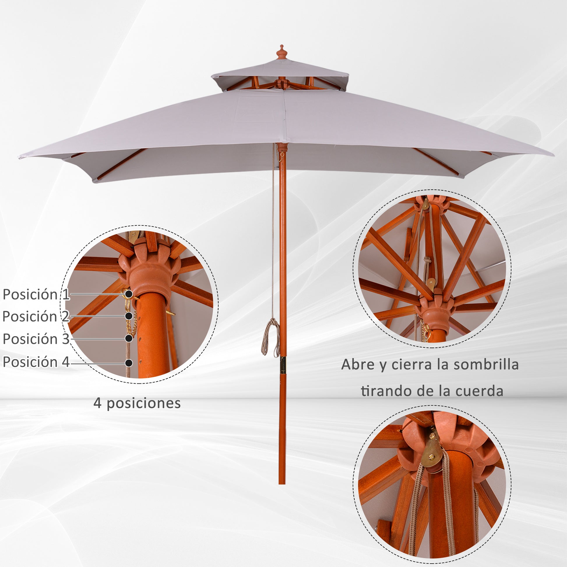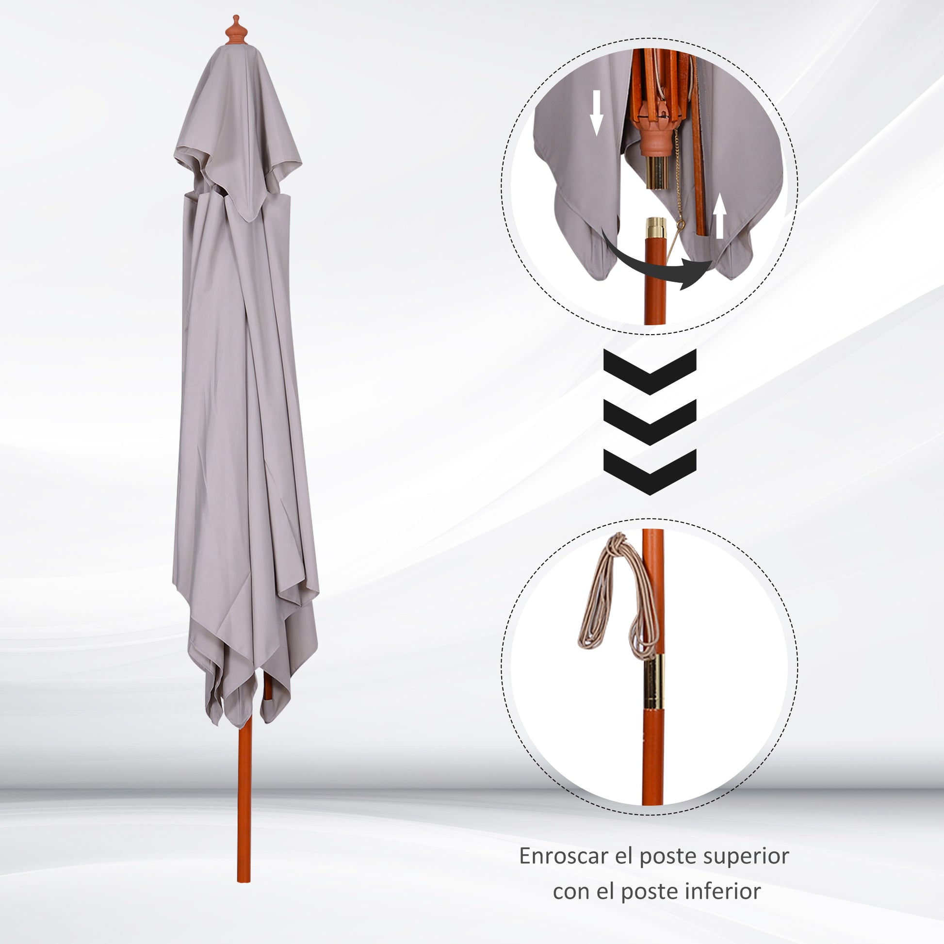 Guarda-Sol de Jardim – 300x300x297 cm – Cinza Claro – Madeira e Poliéster