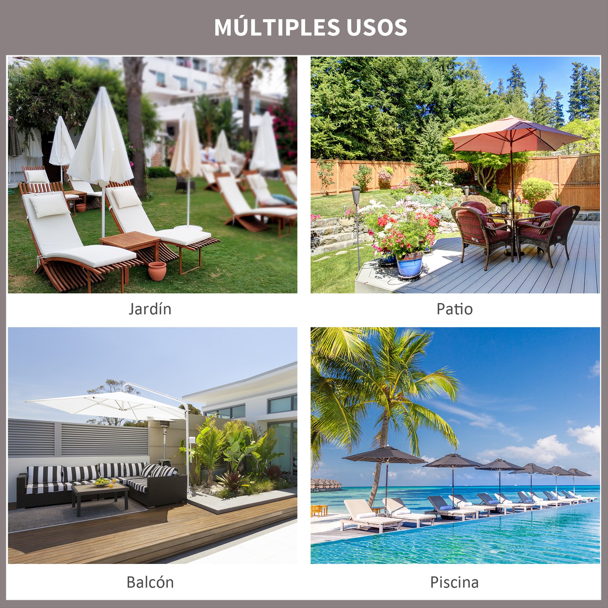 - Usos recomendados: Ideal para jardins, pátios, terraços, piscinas e outros espaços ao ar livre