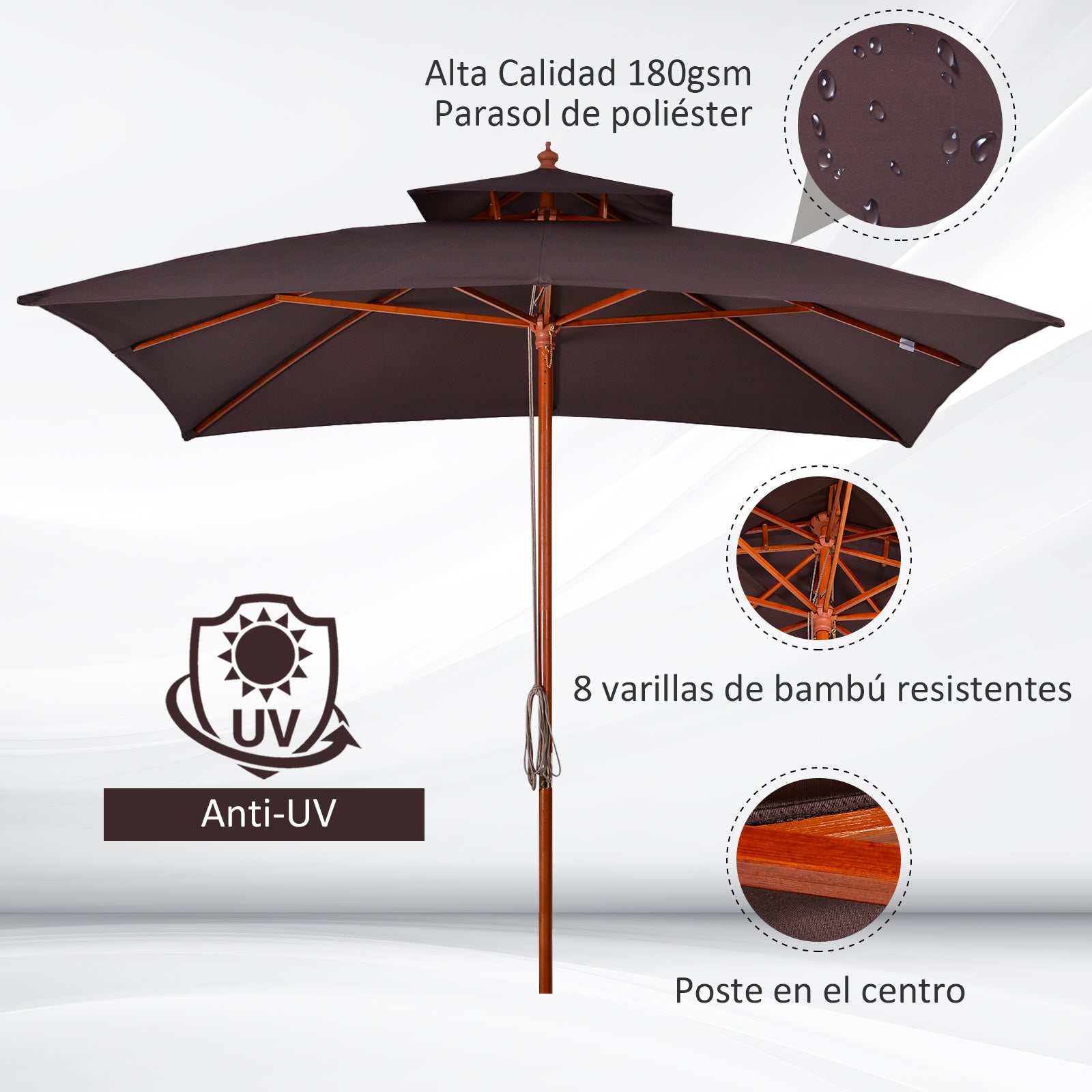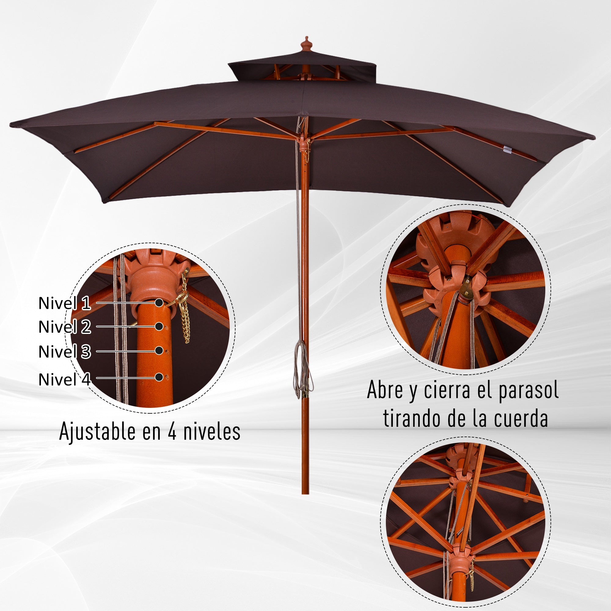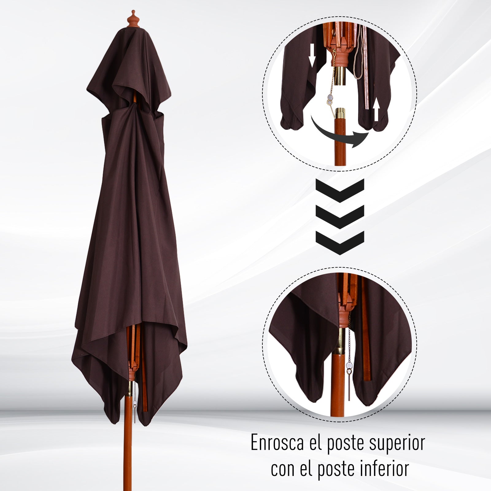 Guarda-Sol de Jardim – 300x300x297cm – Marrom – Madeira e Poliéster