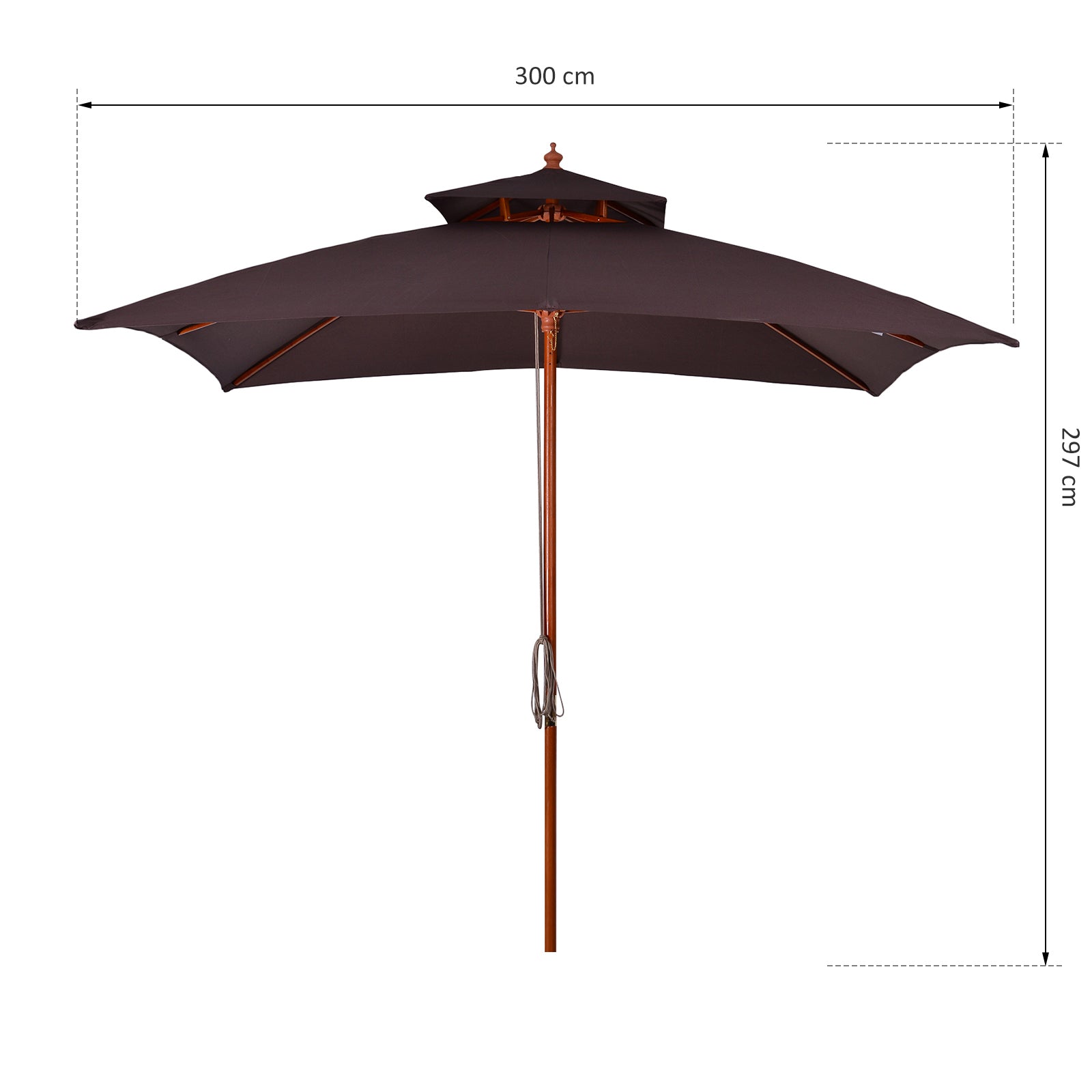 Guarda-Sol de Jardim – 300x300x297cm – Marrom – Madeira e Poliéster