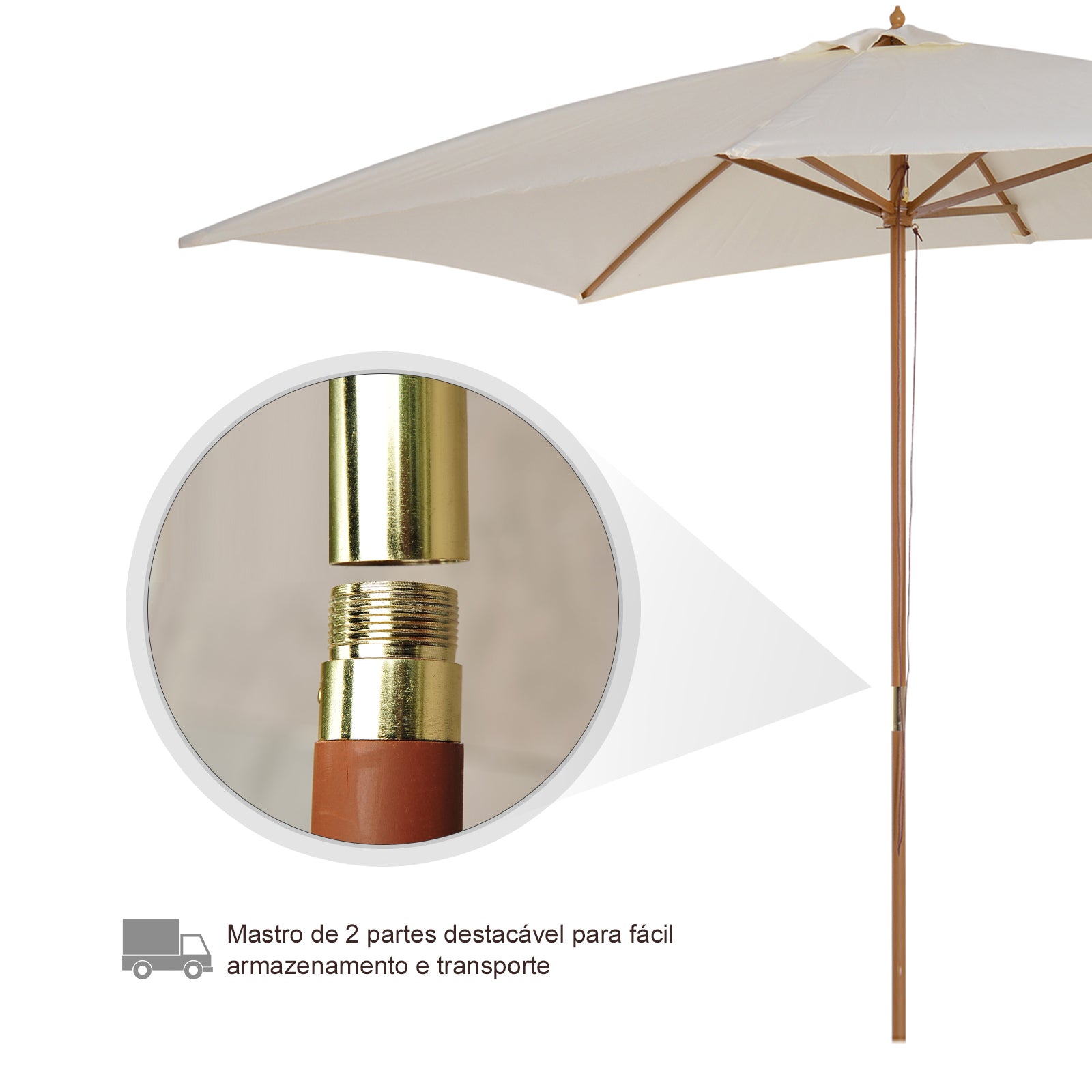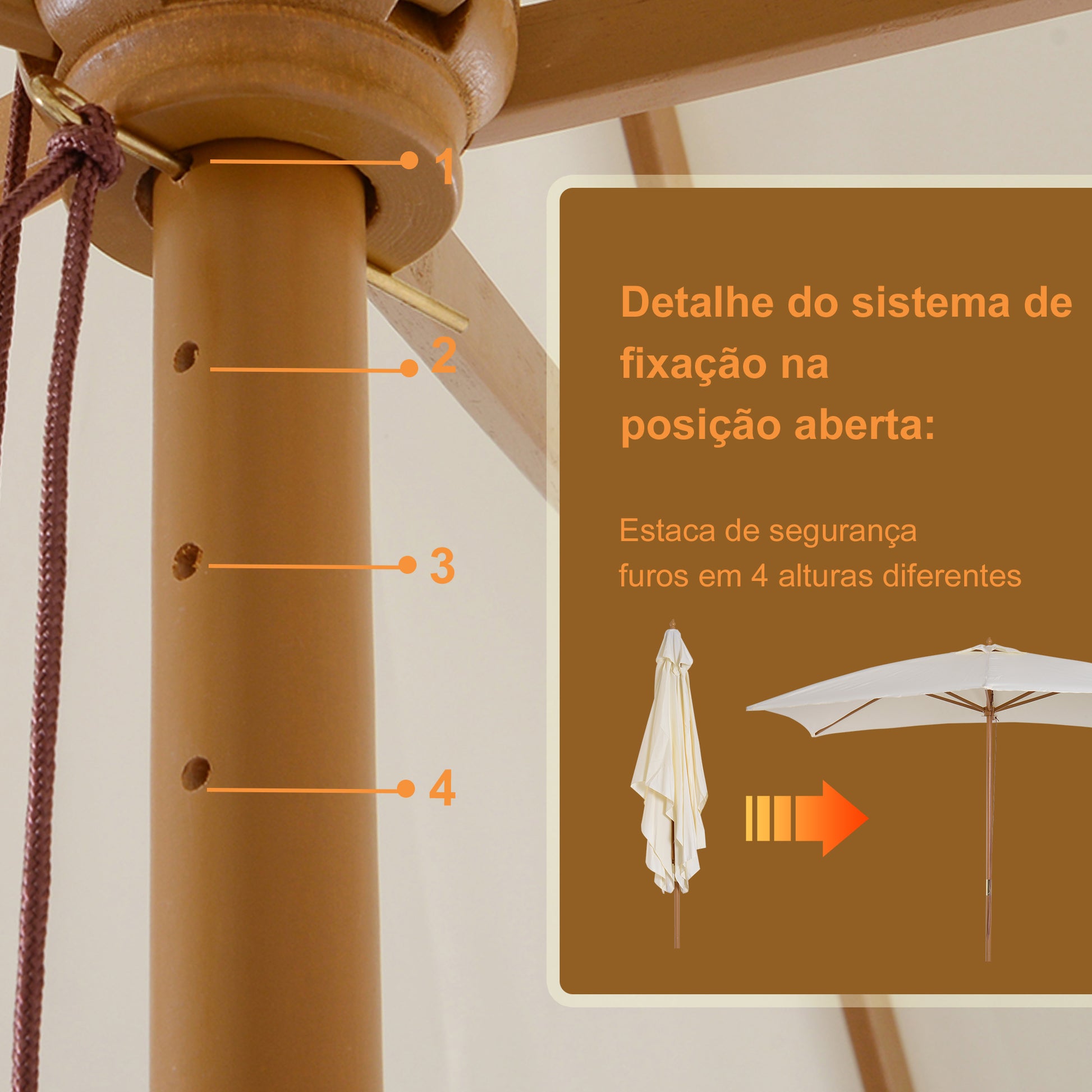 Chapéu de Sol de Jardim Retangular Creme 295x200x255cm