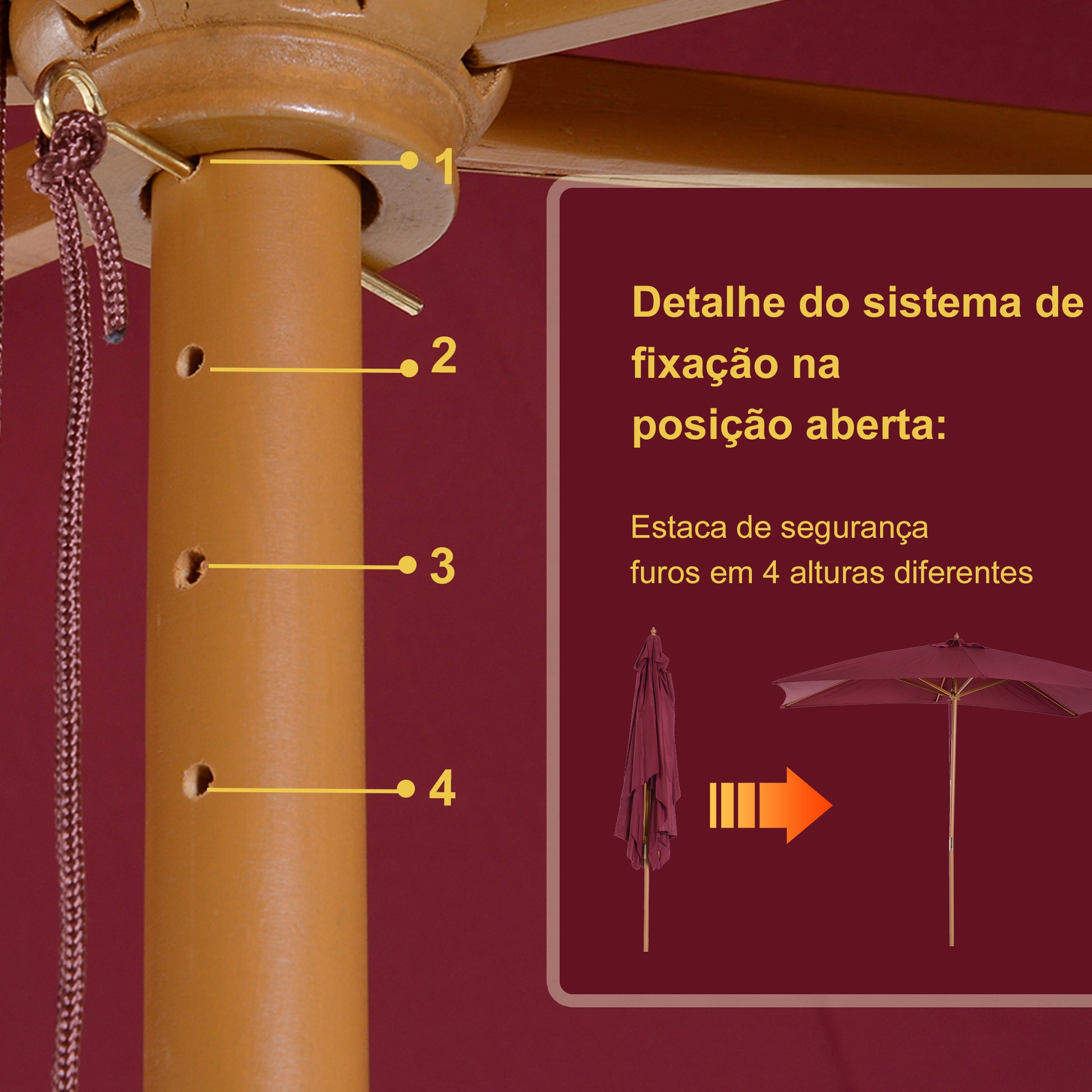 Chapéu de Sol de Jardim Vermelho Vinho 295x200x255cm