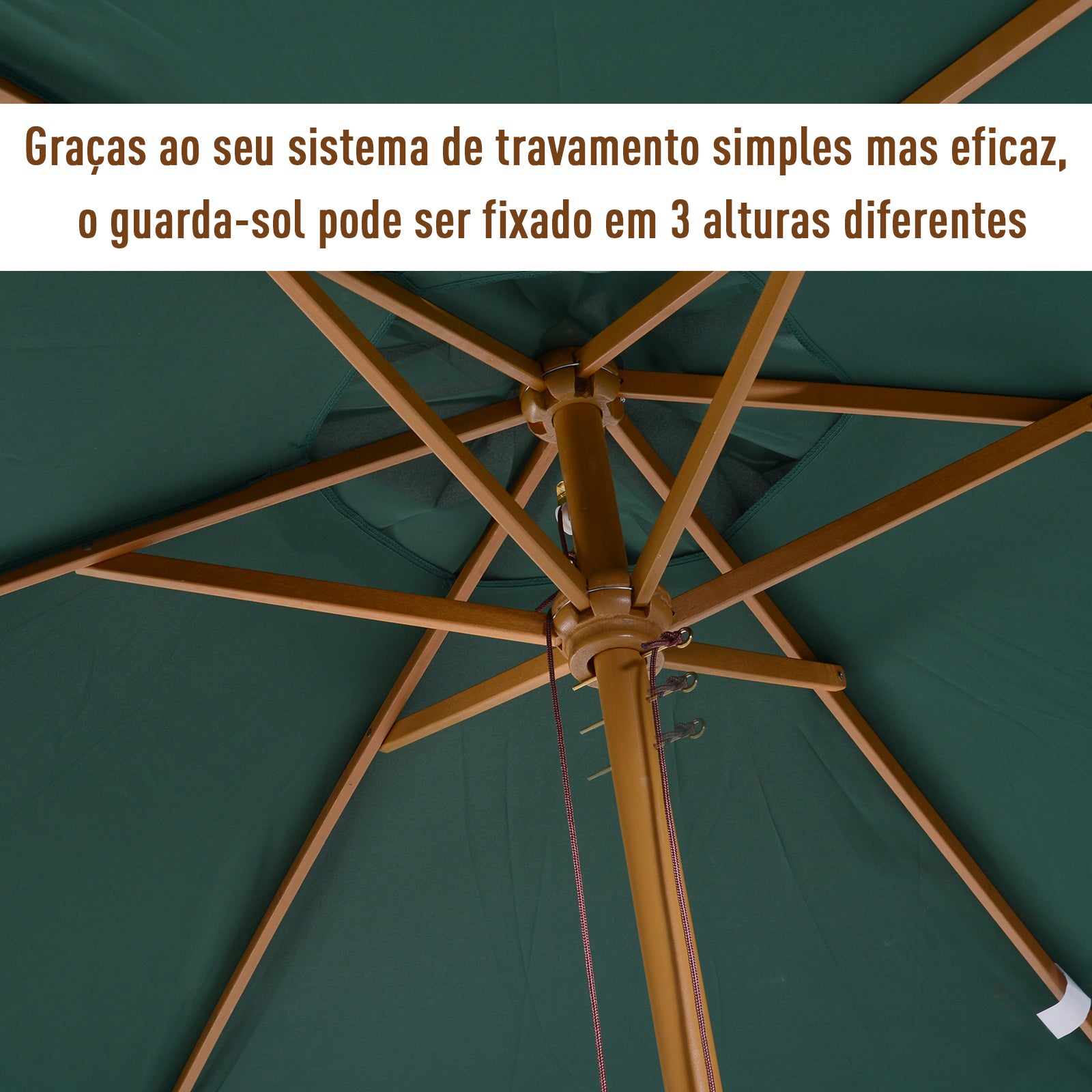 Chapéu de Sol Ø250x230cm Verde Escuro em Madeira com Sistema de Polia