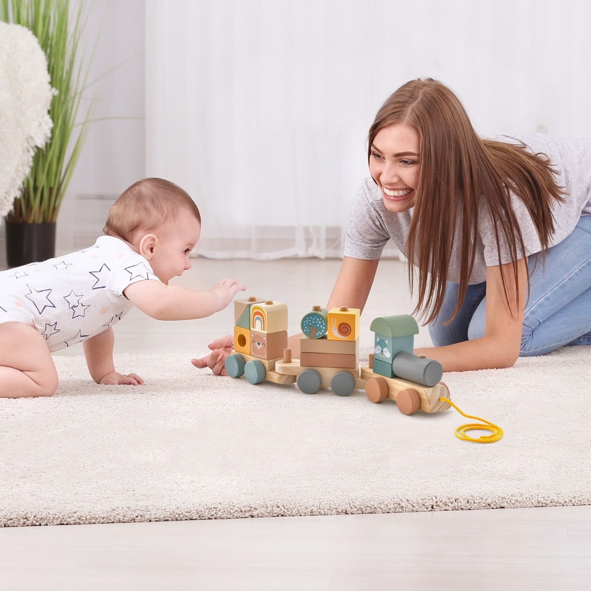Comboio de Madeira com Blocos Empilháveis – madeira