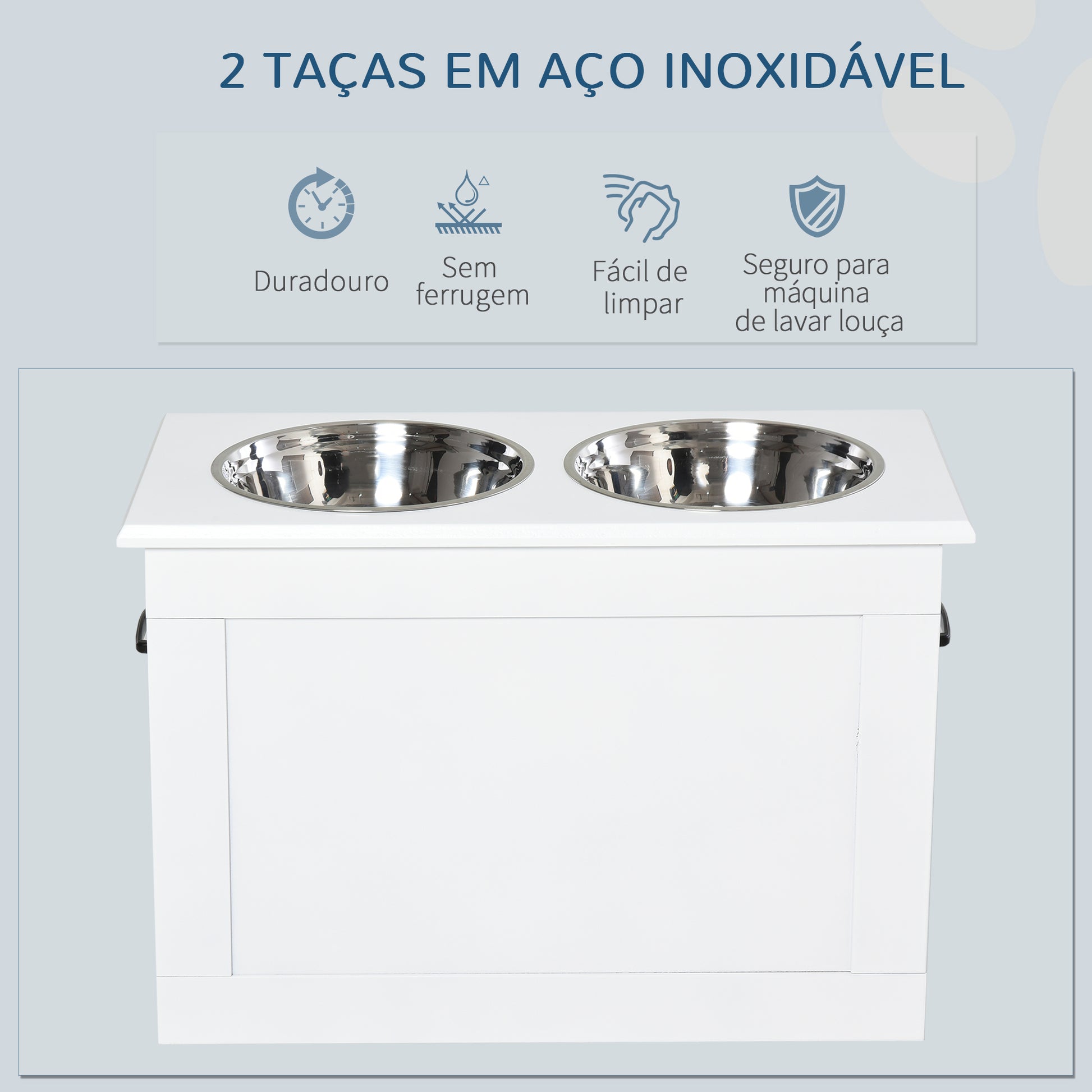 - Outras especificações: Capacidade de cada tigela: 2 L. Possui espaço de armazenamento oculto para guardar comida, petiscos ou brinquedos.