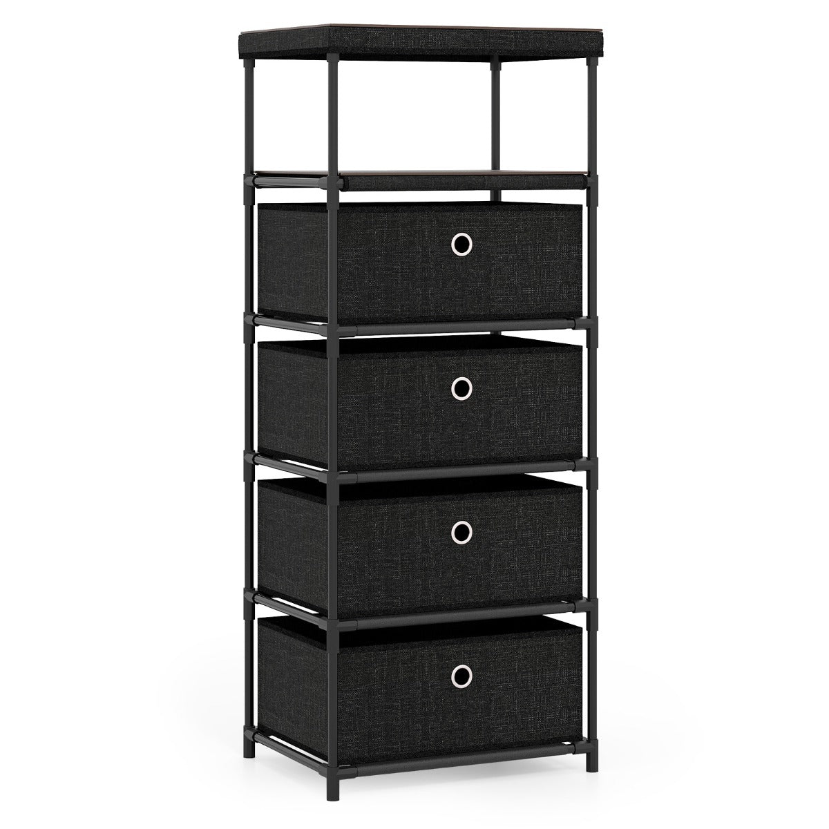 Cómoda com Gavetas de Tecido, Superfície de Madeira e Estrutura Metálica Organizador de Estilo Industrial Preto-4 Gavetas