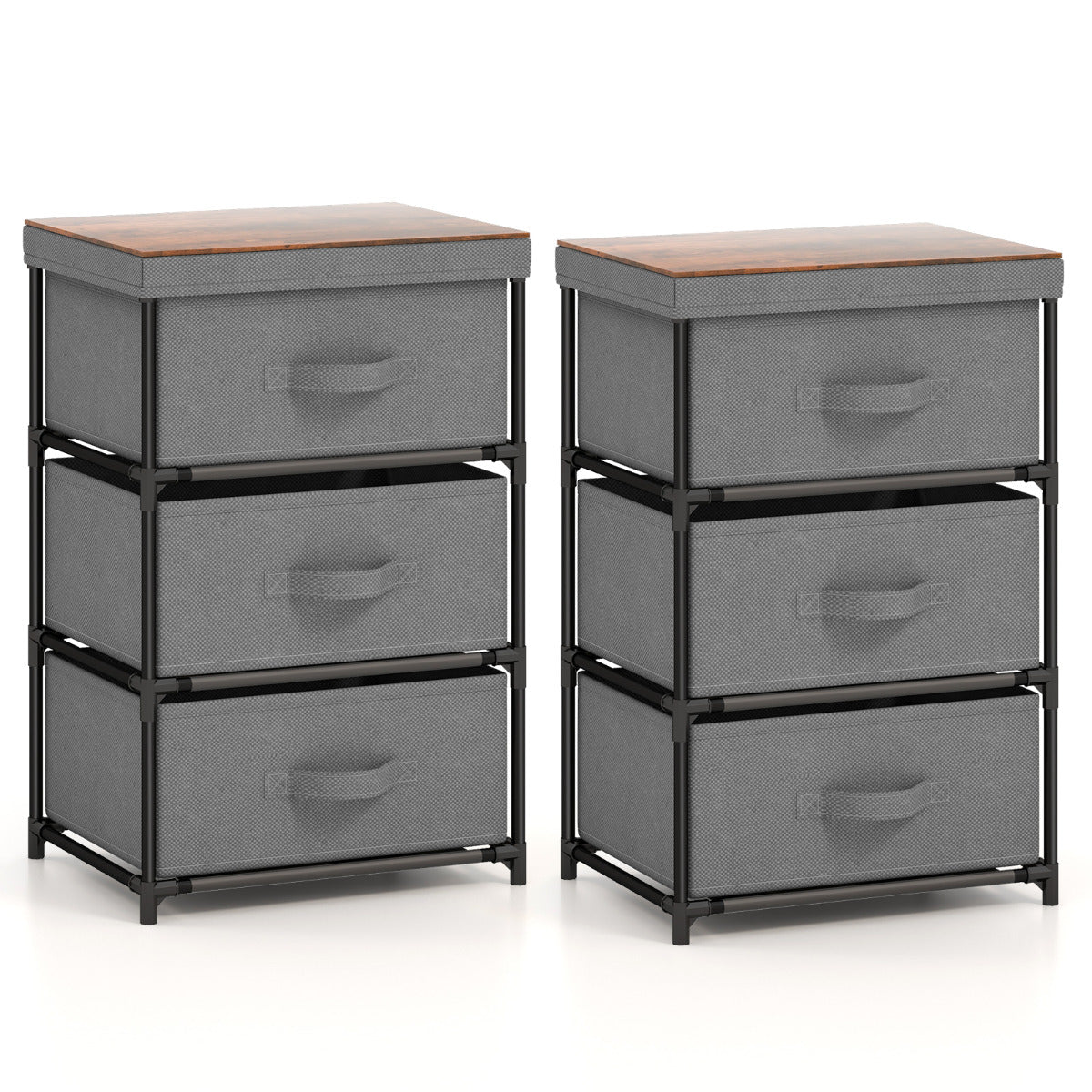 Cómoda de 3 Níveis em Tecido com 3 Gavetas Unidade de Organização Estrutura Metálica - Cinzento