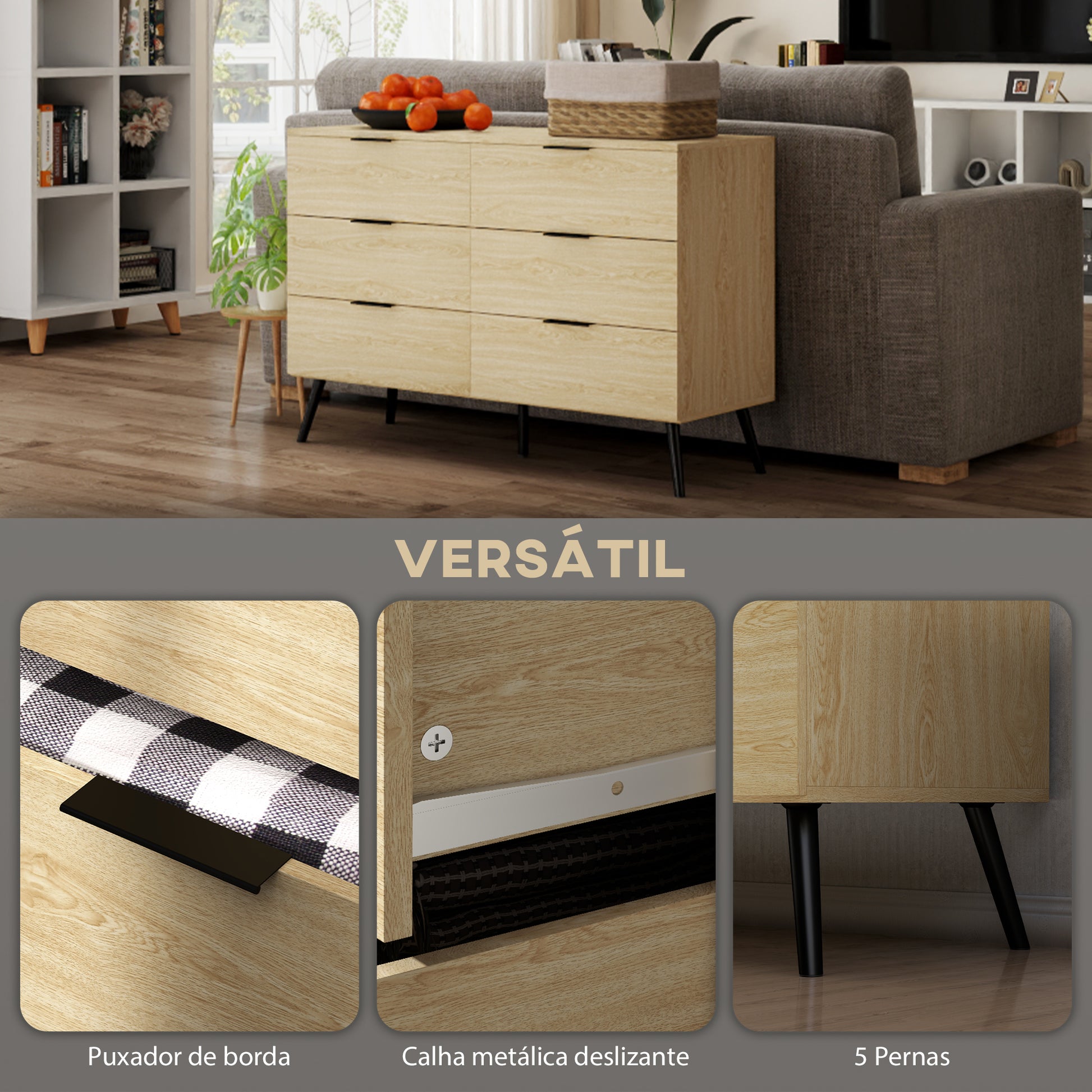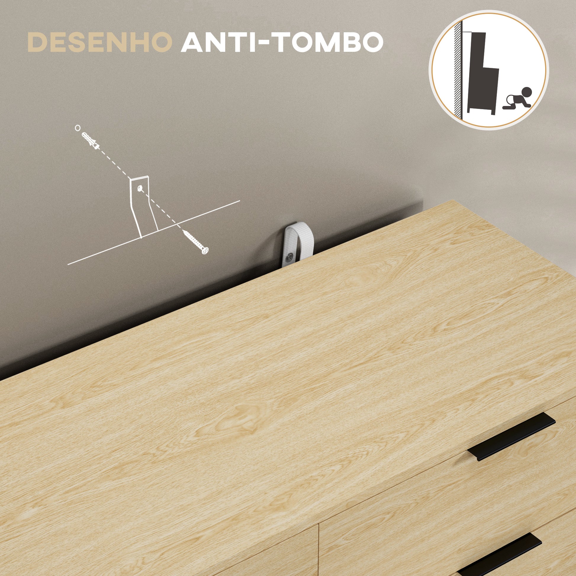 Procura uma solução de armazenamento elegante e funcional para o seu espaço? Esta cómoda moderna com 6 gavetas é a opção perfeita para manter o seu quarto organizado. Com um design anti-tombo e uma cor de carvalho clássica, esta peça é ideal para qualquer ambiente.