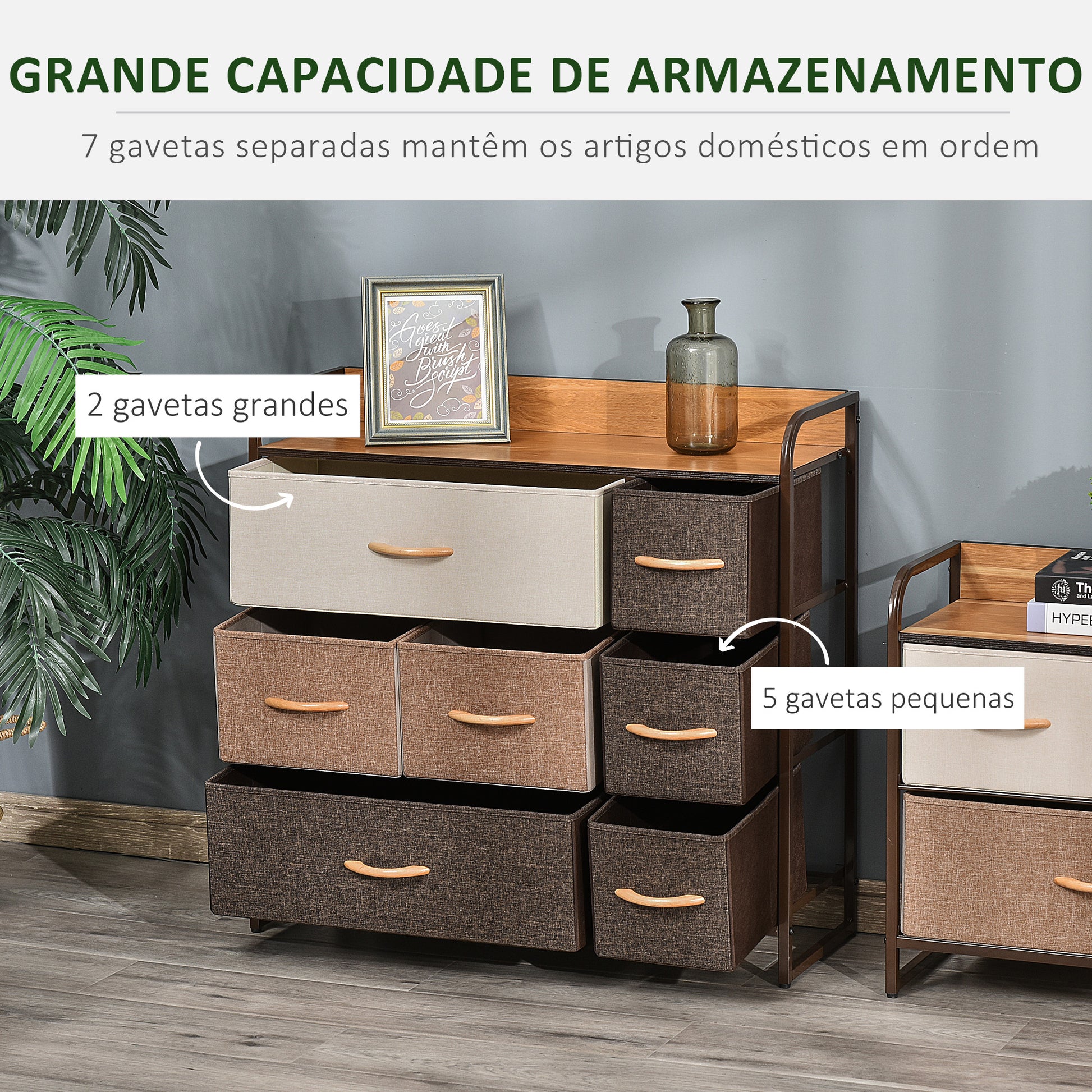 Esta cómoda multicolor oferece uma solução prática e elegante para manter a sua casa organizada. Com 7 gavetas de tecido removíveis e dobráveis, é perfeita para armazenar roupas, roupa de cama, jogos e acessórios.