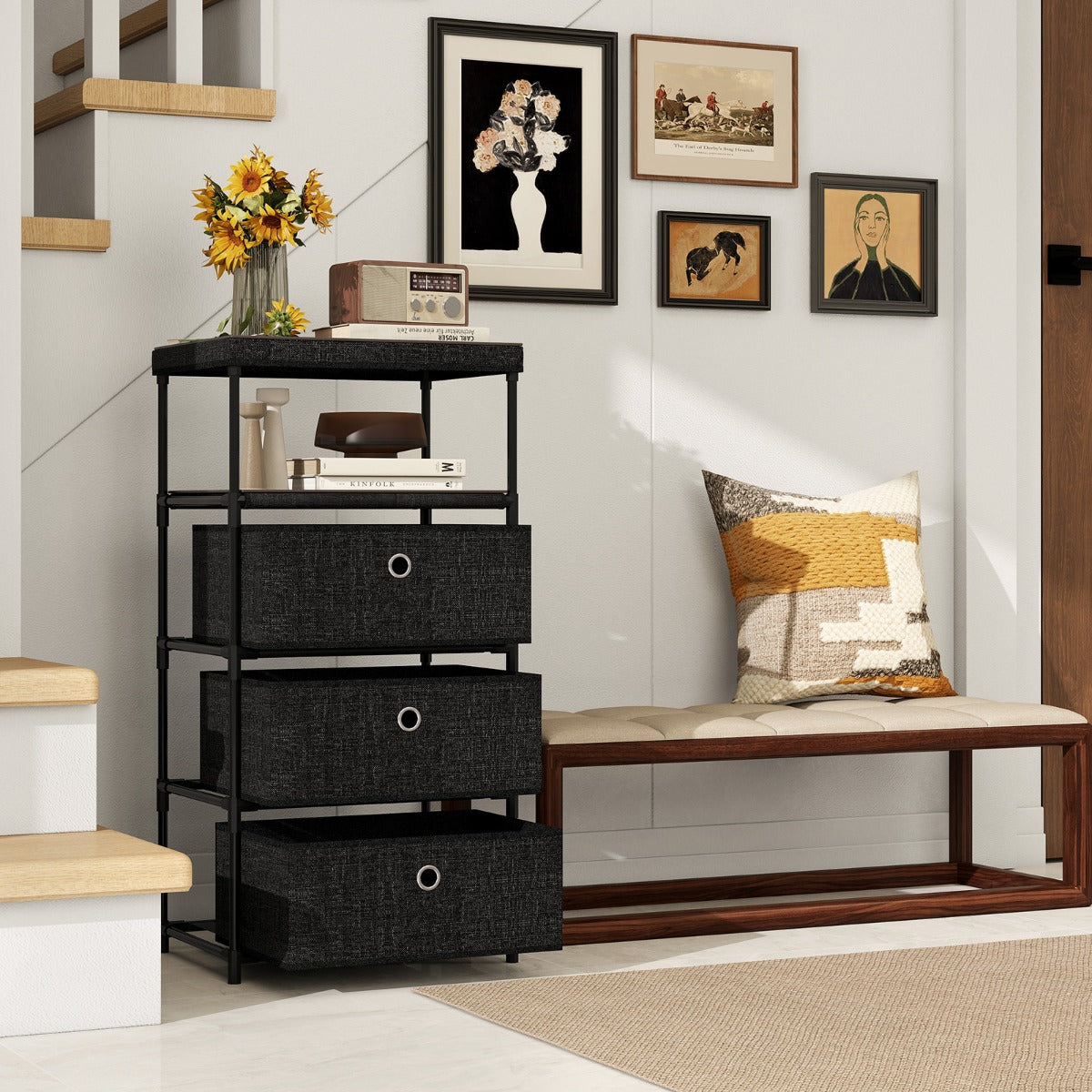 Cómoda Organizadora de Tecido com Superfície em Madeira e Estrutura Metálica Estilo Industrial Preto-3 Gavetas