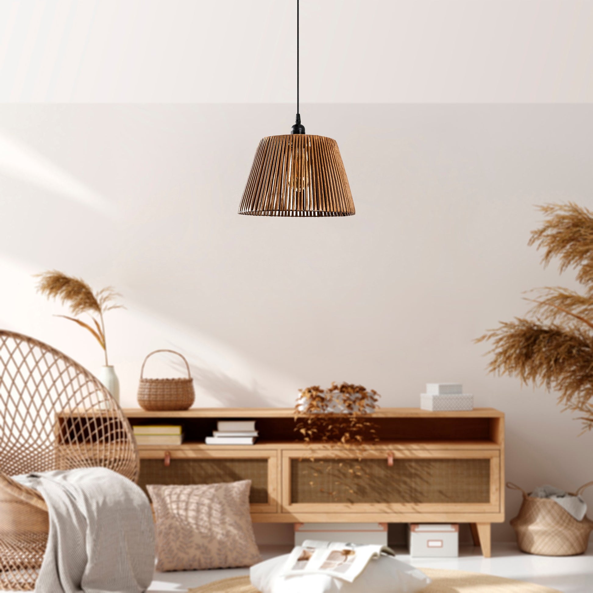 Transforme seu espaço de vida em um santuário de elegância e sofisticação com nosso deslumbrante Lustre Camel. O corpo de metal exala uma sensação de luxo, enquanto a tampa de imitação de bambu adiciona um toque de beleza natural.