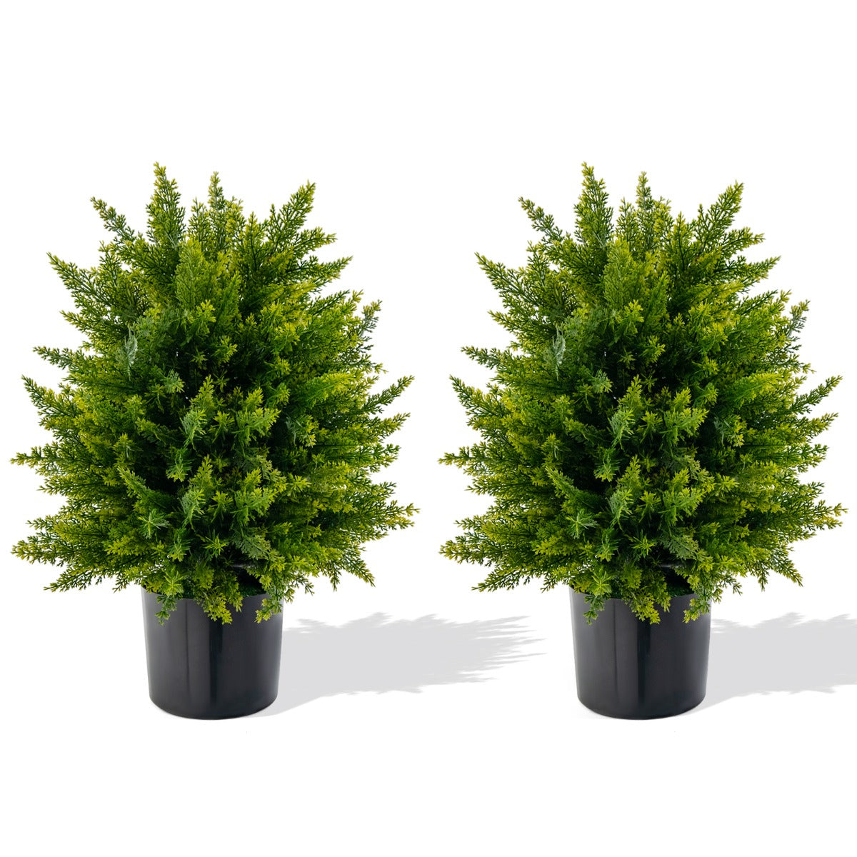Renova a tua casa com o conjunto de 2 árvores artificiais de cedro em forma de bola topiária! Cada árvore artificial de bola contém folhas sempre verdes e relva verde para mostrar vitalidade, enquanto o seu tronco espesso imita de forma bastante realista as plantas reais para uma simulação perfeita. Feitas de materiais duráveis (PE e PVC), cada planta decorativa de 55 cm em vaso é resistente aos raios UV e bastante duradoura para resistir ao desvanecimento ou deformações, sendo também resistente a alergias para uma utilização segura a longo prazo. Não vai murchar em determinadas estações. Além disso, não depende de água e luz solar, nem requer muito tempo e esforço para podar. Na base, cada árvore artificial de bola tem um vaso preenchido com cimento, com o intuito de obter uma melhor estabilidade. Além disso, o conjunto de árvores artificiais de cedro não necessita de instalação e permite uma utilização versátil (interior ou exterior).