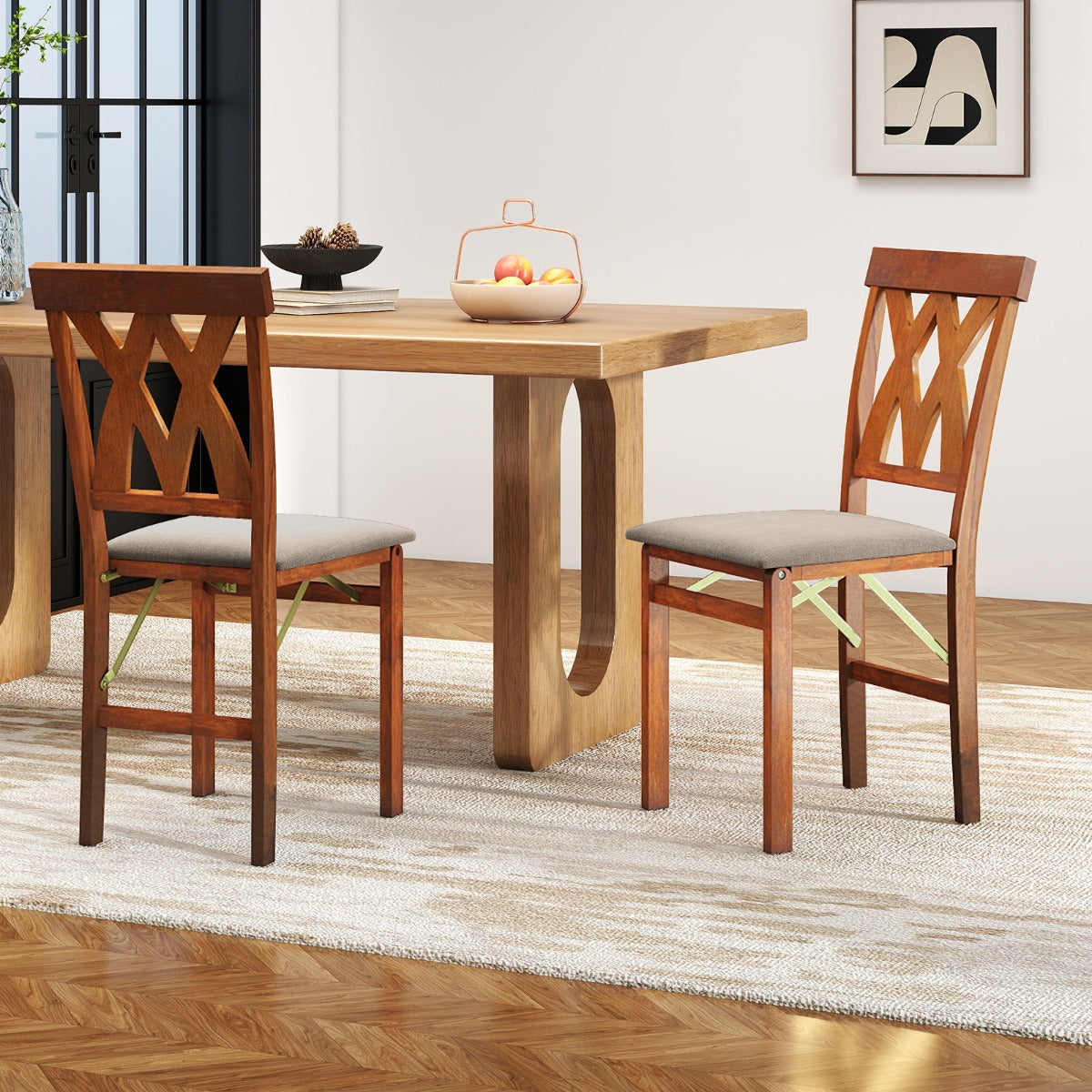 Conjunto de 2 Cadeiras de Jantar Dobráveis em Madeira e Pele Sintética com Estrutura em Madeira de Borracha Assento Acolchoado Nogueira