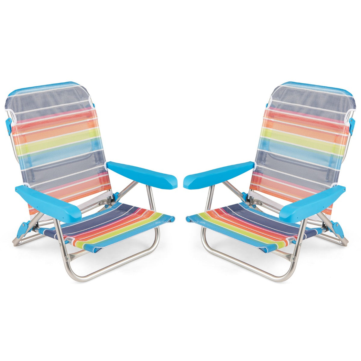 Eleve a sua experiência de descanso ao ar livre com o conjunto de 2 cadeiras de praia dobráveis. A cadeira de praia apresenta um encosto alto e apoios de braços integrados para uma postura de assento relaxante. Com um encosto ajustável em 5/4 posições, as cadeiras de acampamento dobráveis adaptam-se facilmente a qualquer ambiente, seja a apanhar sol ou a desfrutar de um piquenique. As cadeiras também têm um assento baixo, permitindo um agradável estiramento de pernas para aqueles dias longos e preguiçosos. Equipadas com almofadas antiderrapantes e estrutura de alumínio à prova de ferrugem, as cadeiras de praia são estáveis e duráveis. Além disso, a leve cadeira de piquenique vem com uma prática alça de transporte e apresenta um design dobrável que simplifica o transporte e armazenamento.