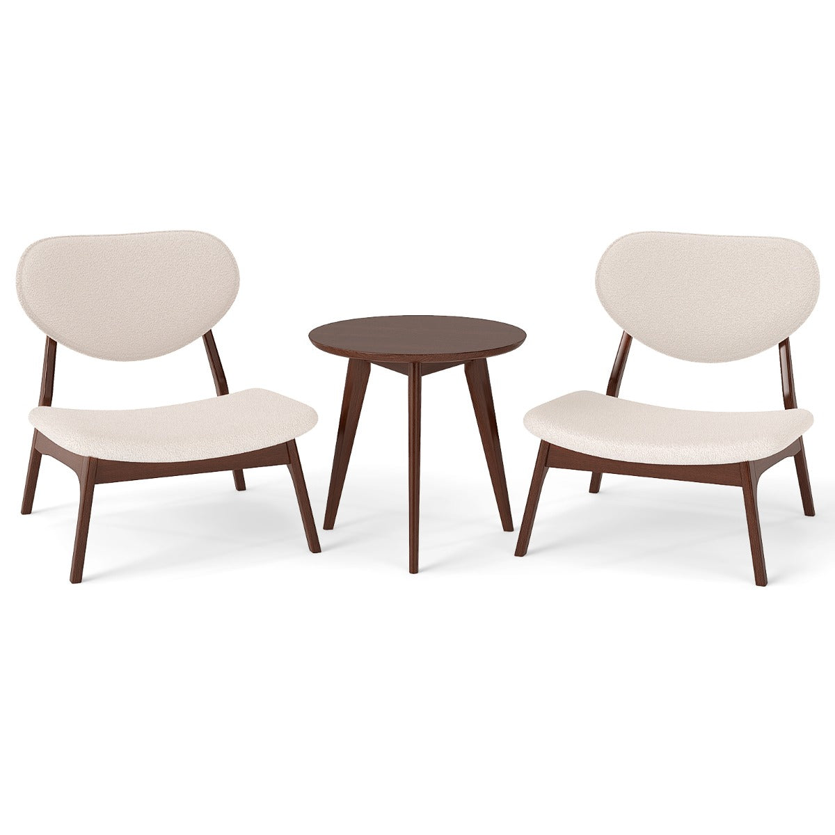 Conjunto de 2 Cadeiras Decorativas com Mesa Auxiliar Cadeiras Estofadas em Veludo de Cordeiro com Estrutura de Madeira Maciça para Quarto Bege