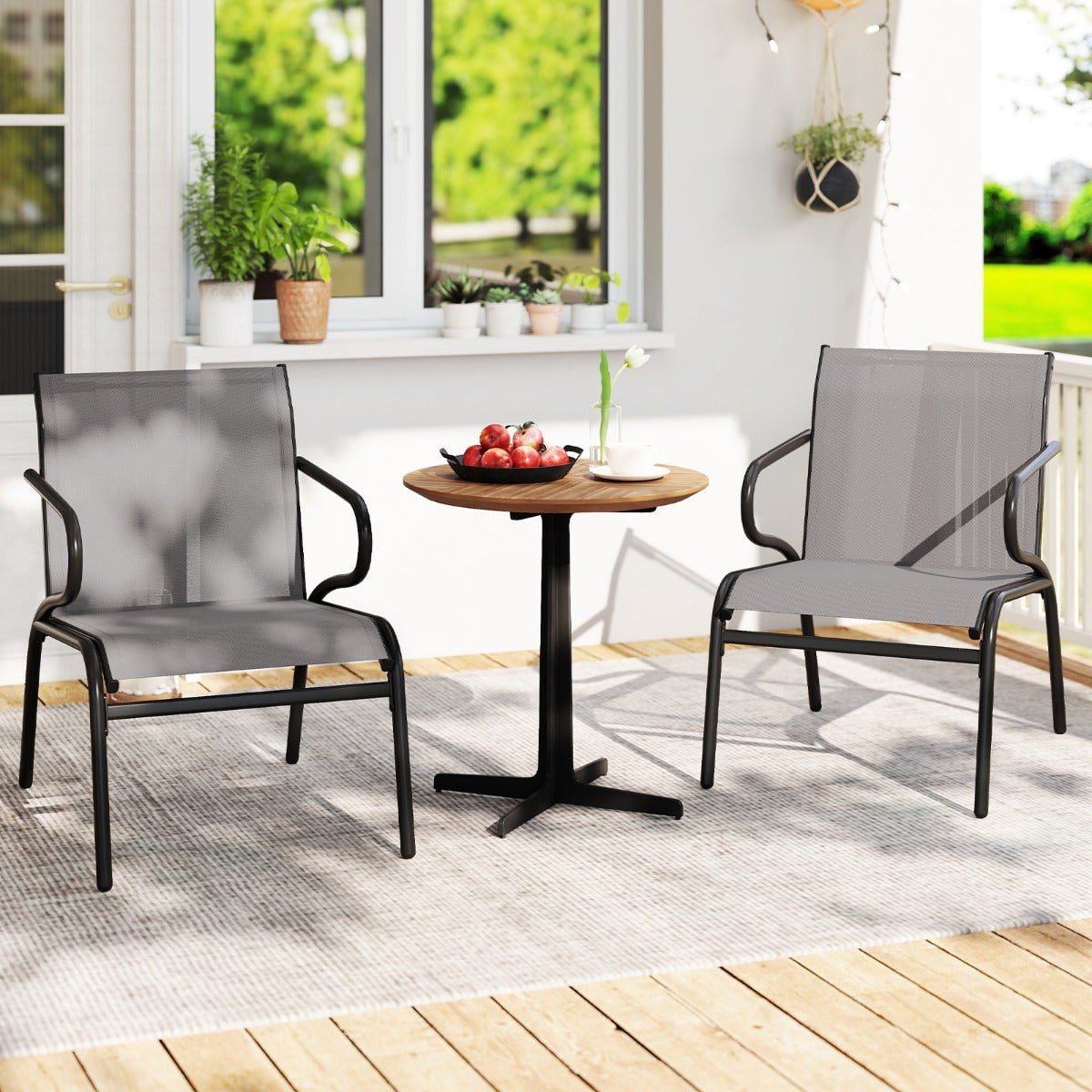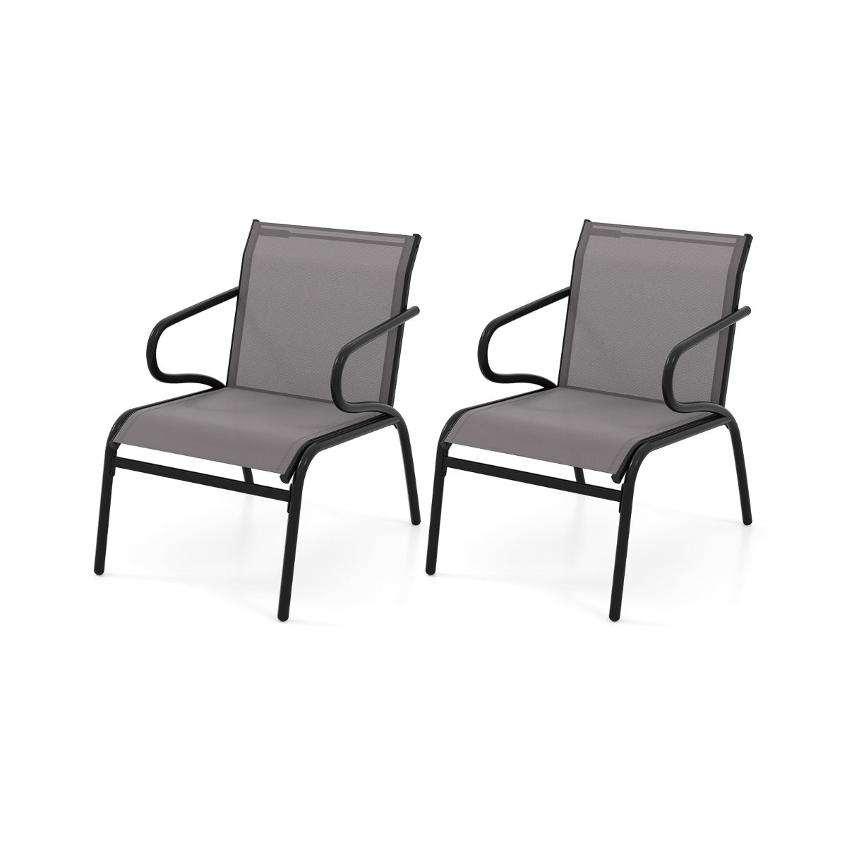 Conjunto de 2 Cadeiras para Exterior - Jogo de Mobiliário de Jardim com Encosto Alto e Apoio de Braços - Cadeiras Empilháveis com Tecido Respirável Cinzento