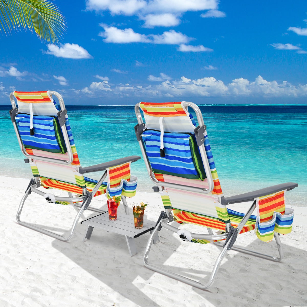 Conjunto de Cadeiras Reclináveis para Campismo - Multicolorido