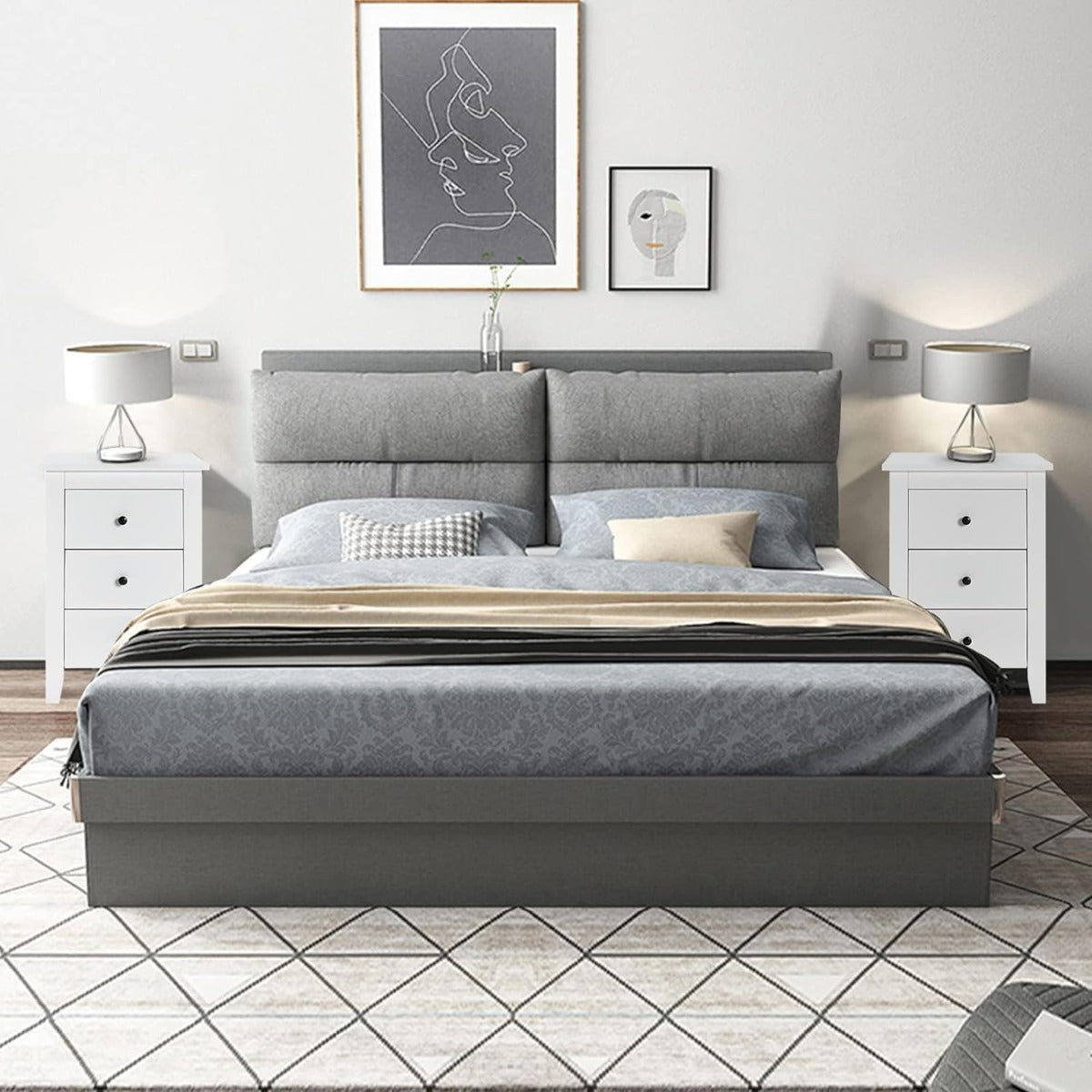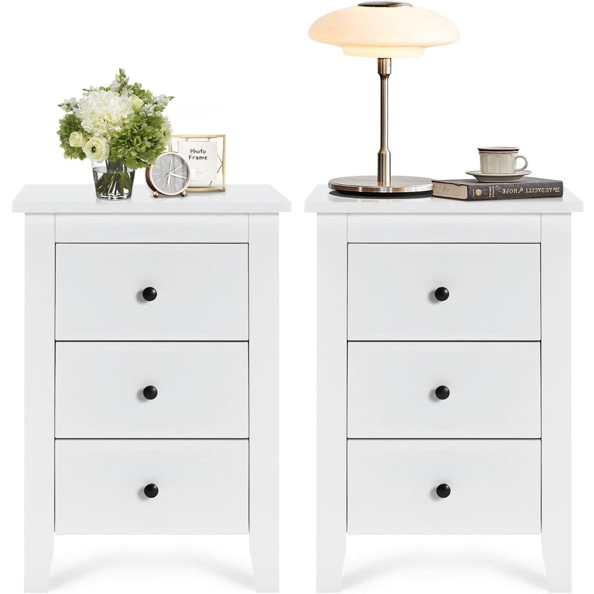 Conjunto de 2 Mesas de Cabeceira em Madeira com 3 Gavetas de Armazenamento Espaçosas para Quarto ou Escritório Branco