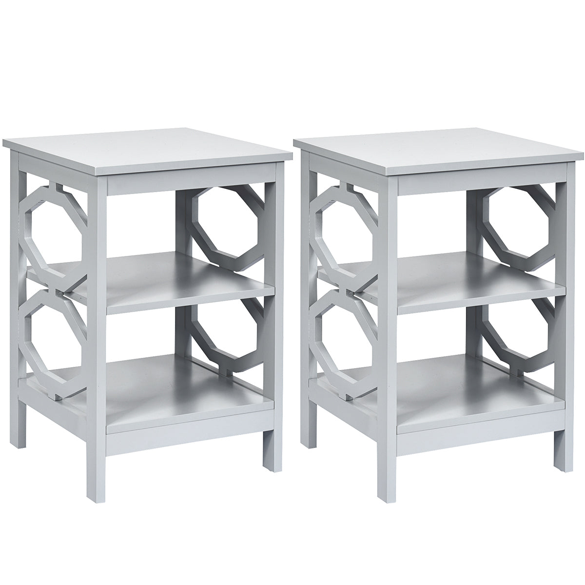 Conjunto de 2 Mesinhas de Cabeceira 3 Níveis Mesa Auxiliar Decoração em Forma de Omega Mesinha para Sofá Quarto Sala Corredor 40 x 40 x 61 cm Cinza