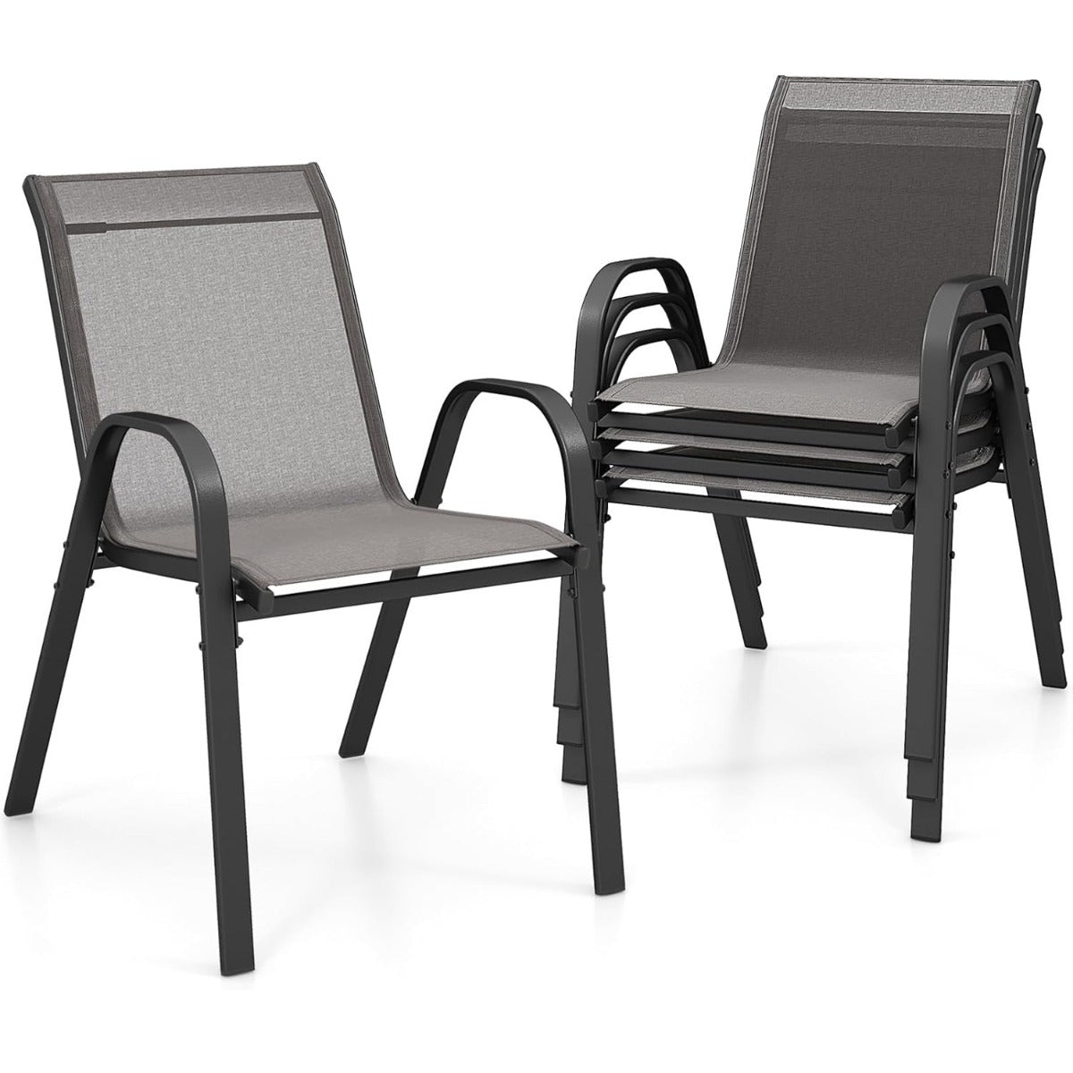 Conjunto de 4 Cadeiras de Jardim Empilháveis Confortáveis Cadeirão de Terraço com Apoio de Braços Encostos de Metal e Tecido 56 x 70 x 84 cm Cinzento