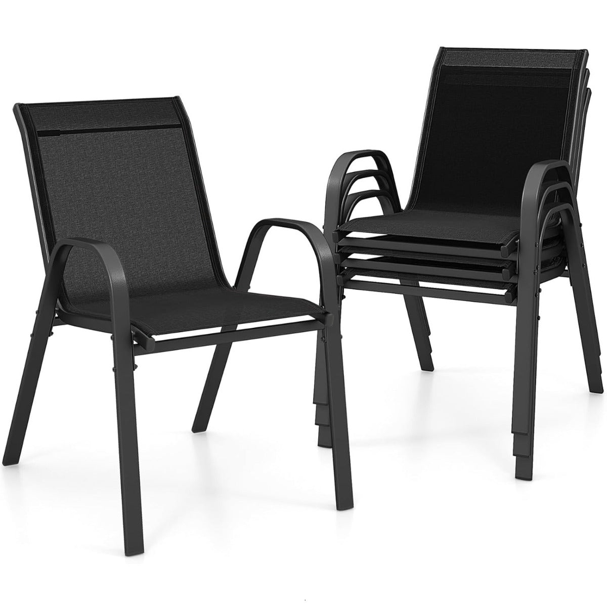 Conjunto de 4 Cadeiras de Jardim Empilháveis Confortável Poltrona de Terraço com Apoio de Braços Encostos em Metal e Têxtil 56 x 70 x 84 cm Preto